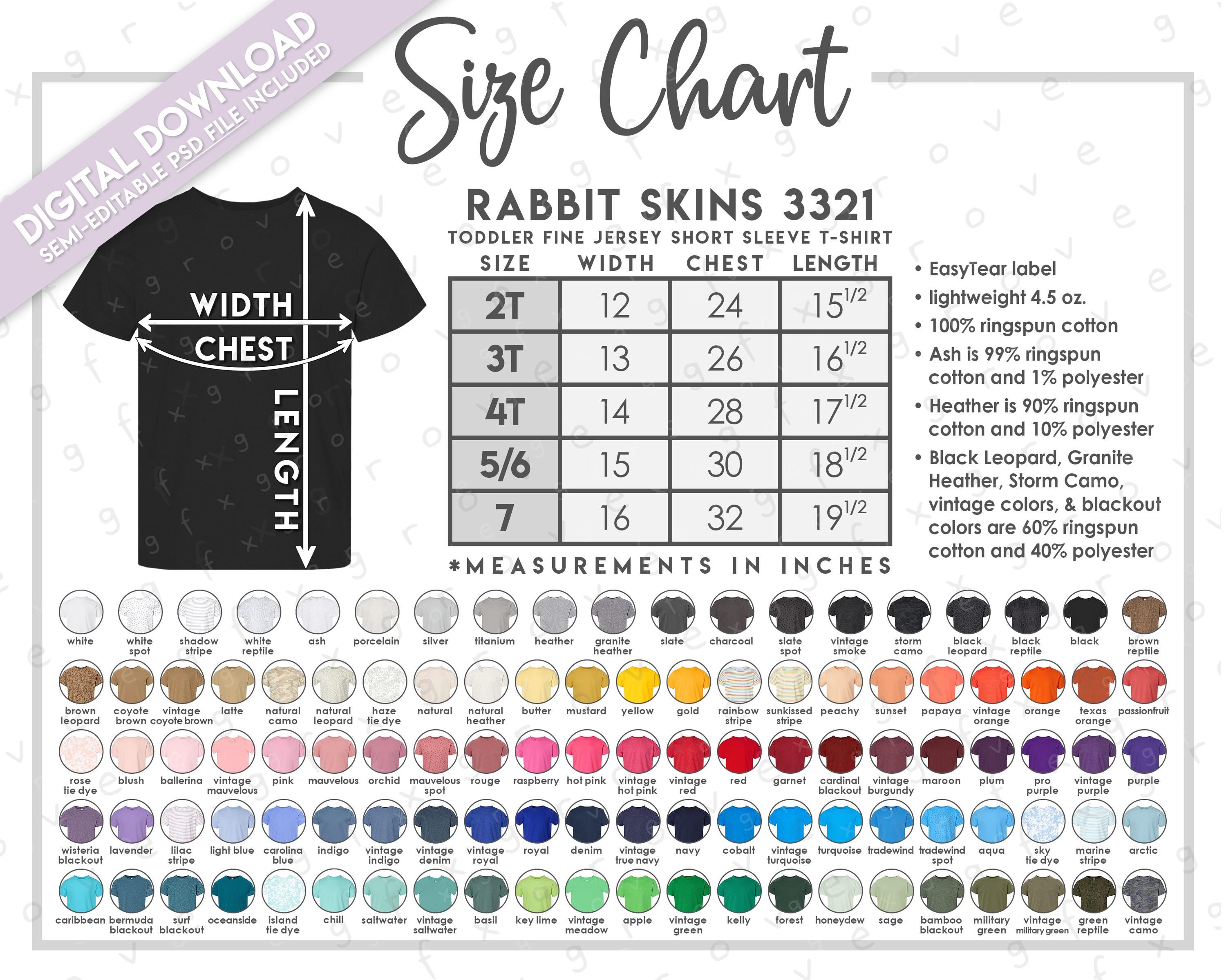 Semi-Editable Rabbit Skins 3321 Size + Color Chart * Rabbit Skins T...