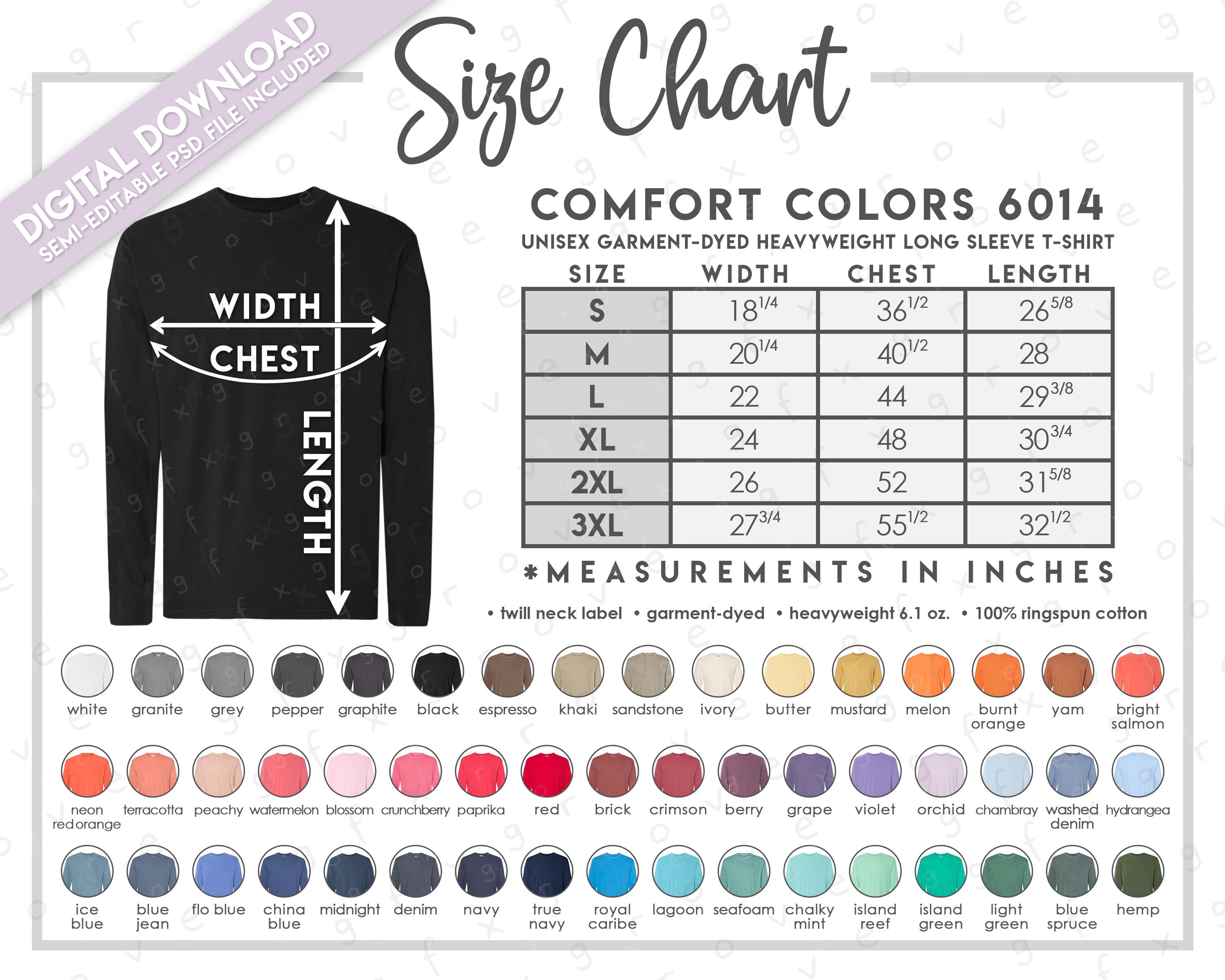 Semi-Editable Comfort Colors 6014 Size + Color Chart * Comfort Colo...