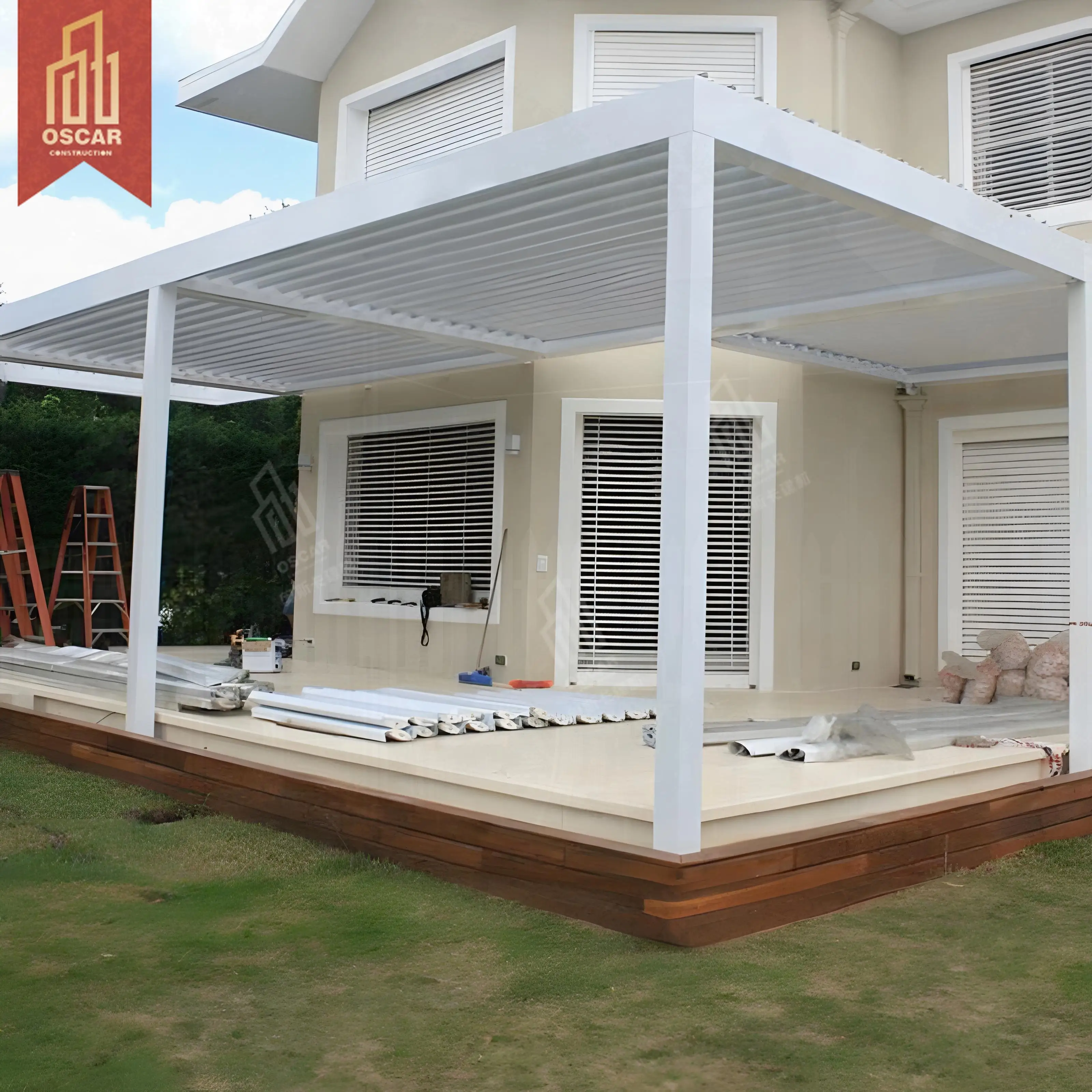 Sunshine Water - Resistant Aluminum Patio Louver Roof Pavilion Perg...