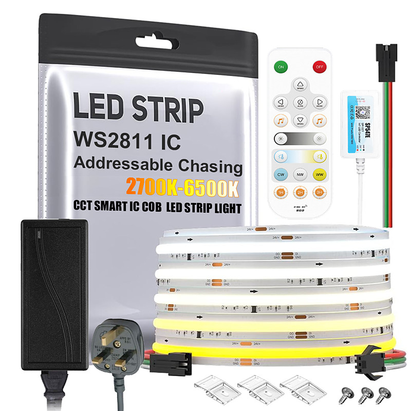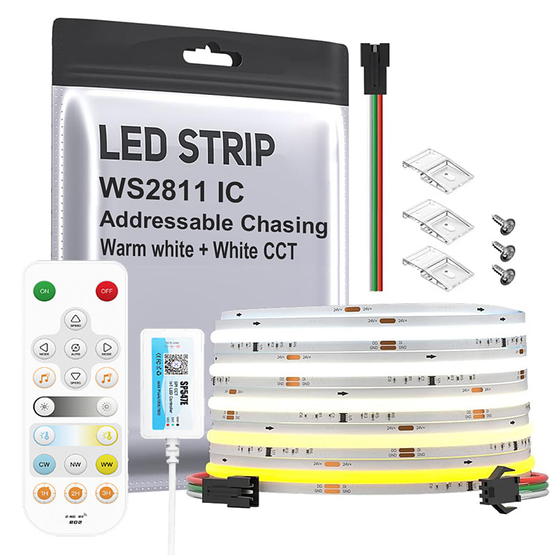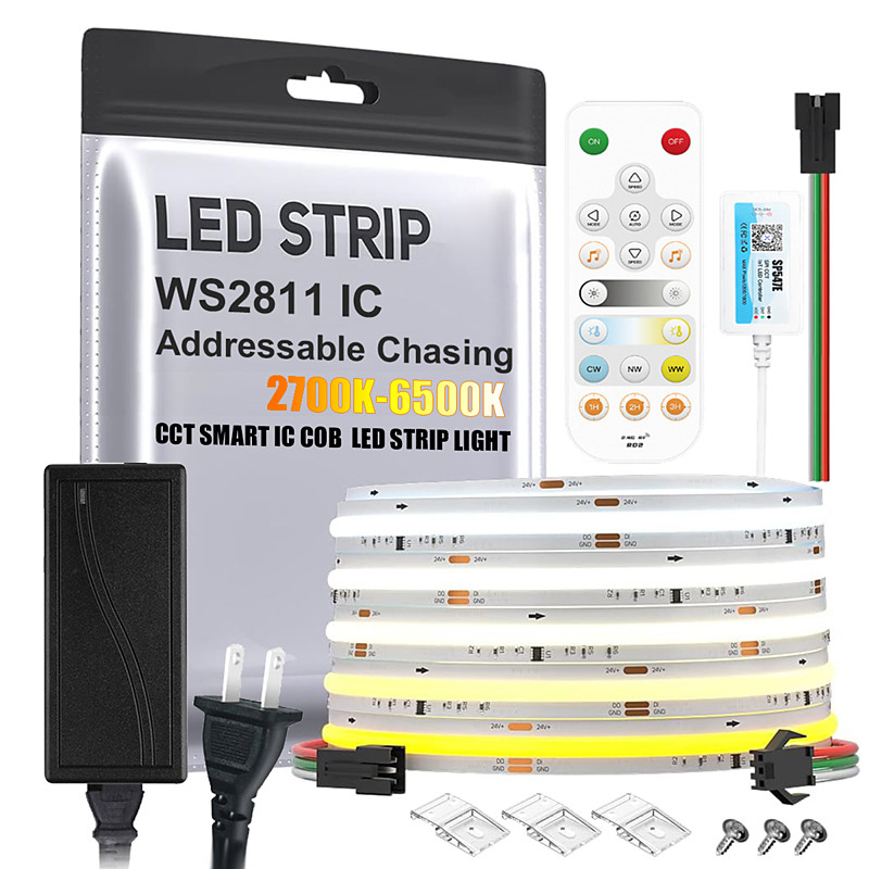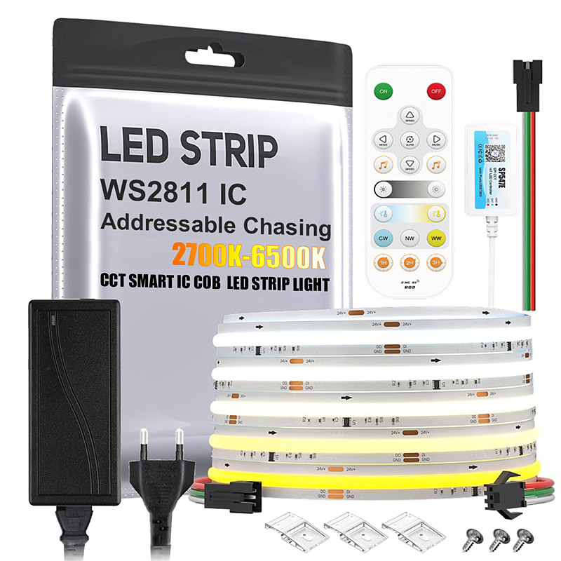 COB LED Strip Lights Addressable 2700K-6500K Chasing White Light CC...