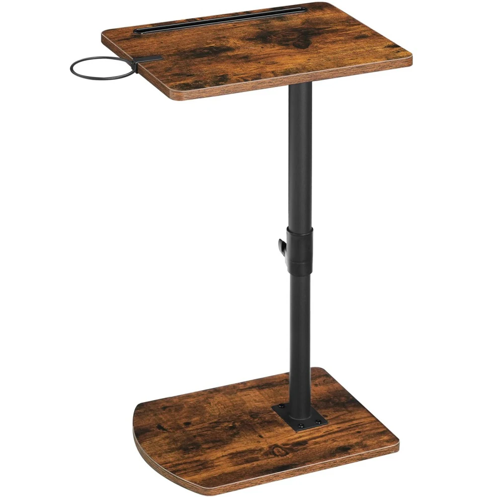 C-Shaped Height Adjustable Vintage Side Table, 360° Rotating Sofa Laptop Desk with Removable Cup...