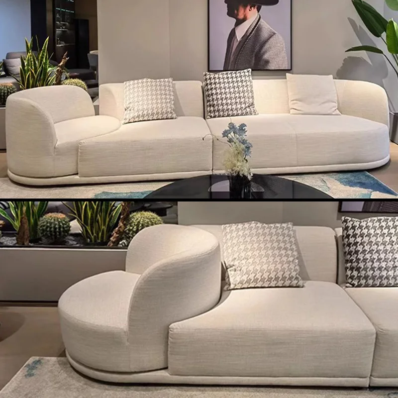 Living Room Creative 360° Rotating Sofa Modern Beige Cotton-Linen Lounge Couches for Hotel Luxur...