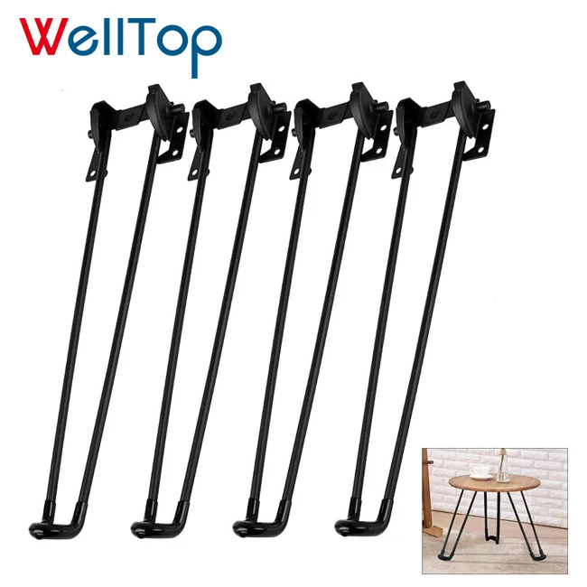 WELLTOP Black Table Legs Metal Table Hairpin Leg 16" Folding H...