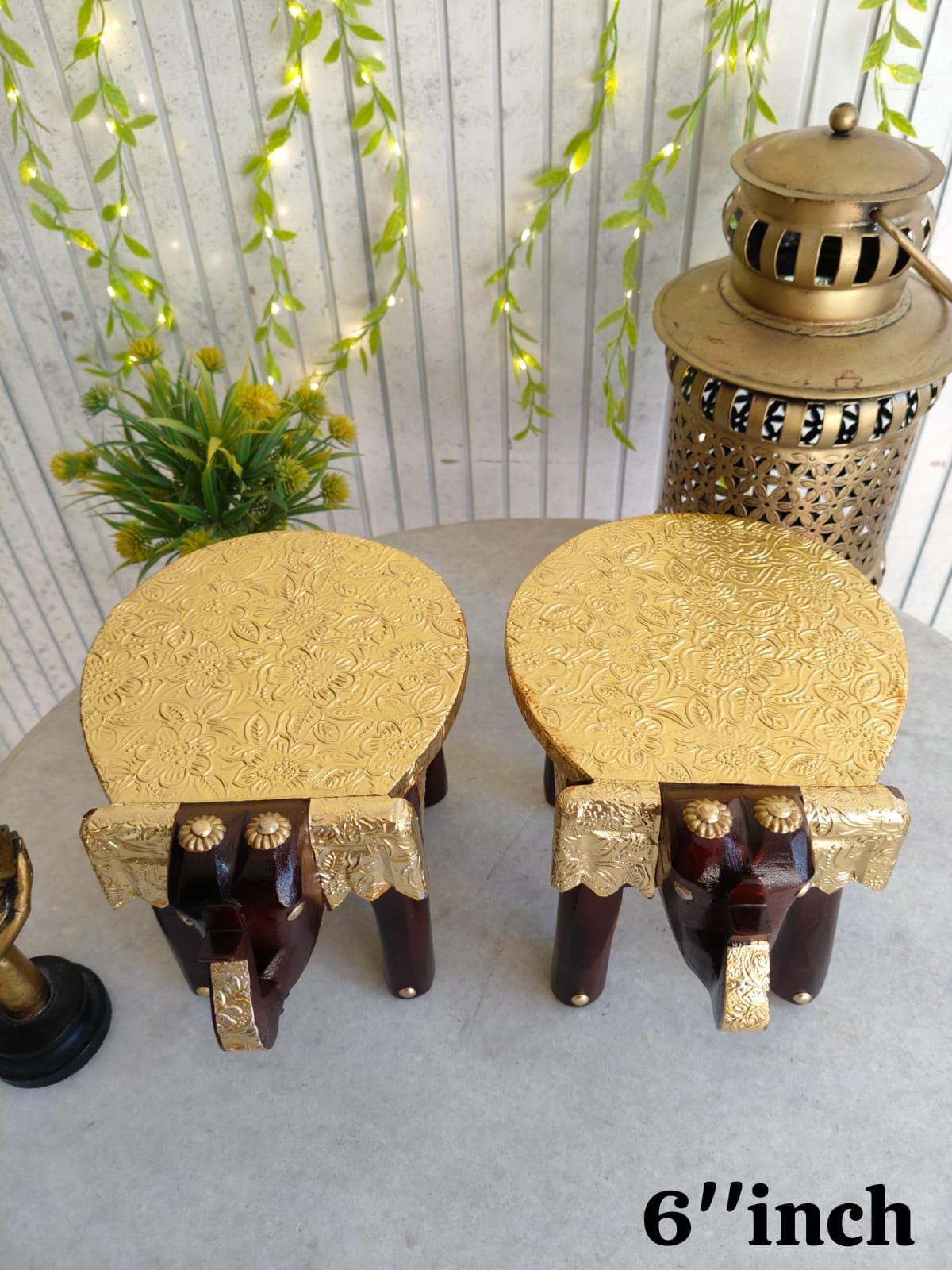 Handmade Wooden Elephant Stool Set: Indian Decor Accent Table, 6 In...