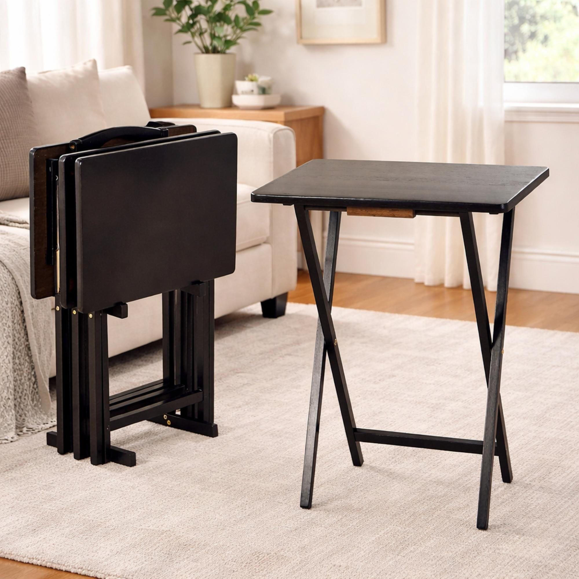 About this item - 4 folding trays in Black with matching rack for storing - Easily folds open into a...
