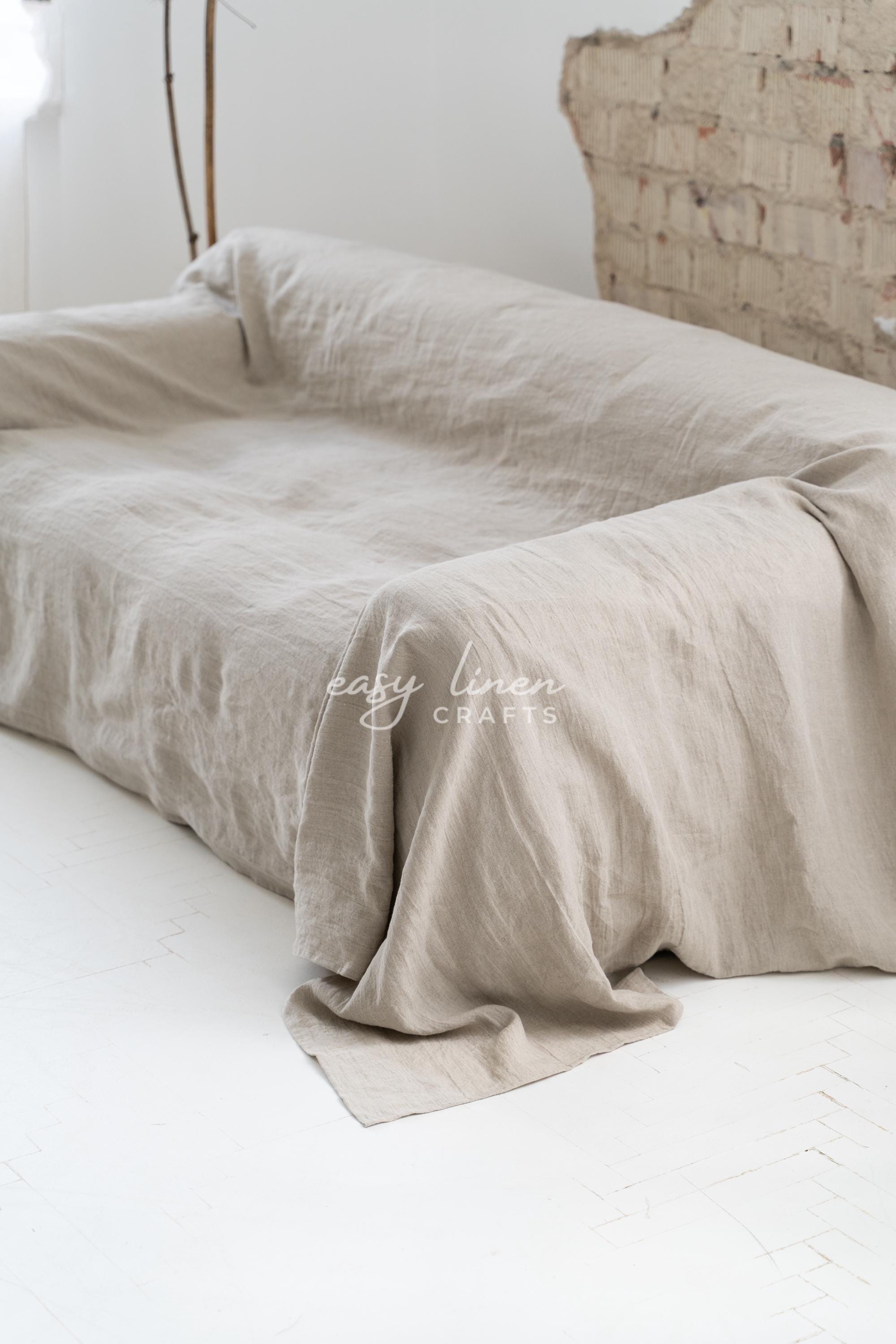 Linen couch cover, extra large couch slipcover, loose custom sofa s...