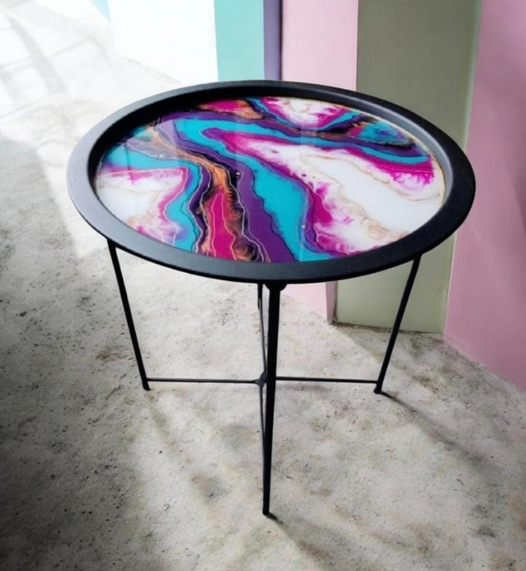 "This Resin tray table is very eye catching in the geode style and bright colors. 47cm wide 50c...