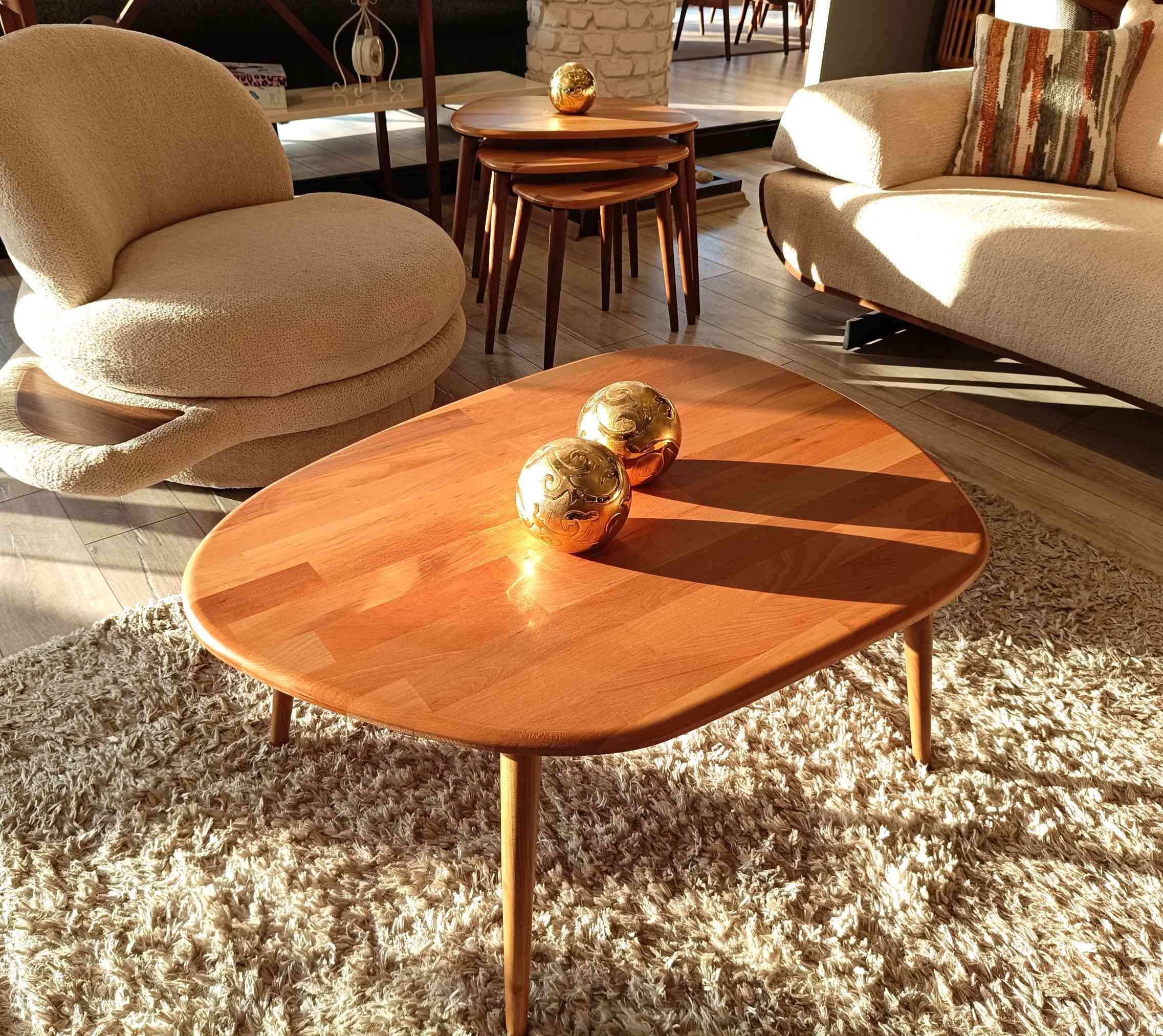 • Handmade Beech Wood Nesting Table Set: Scandinavian Style Coffee Ta...