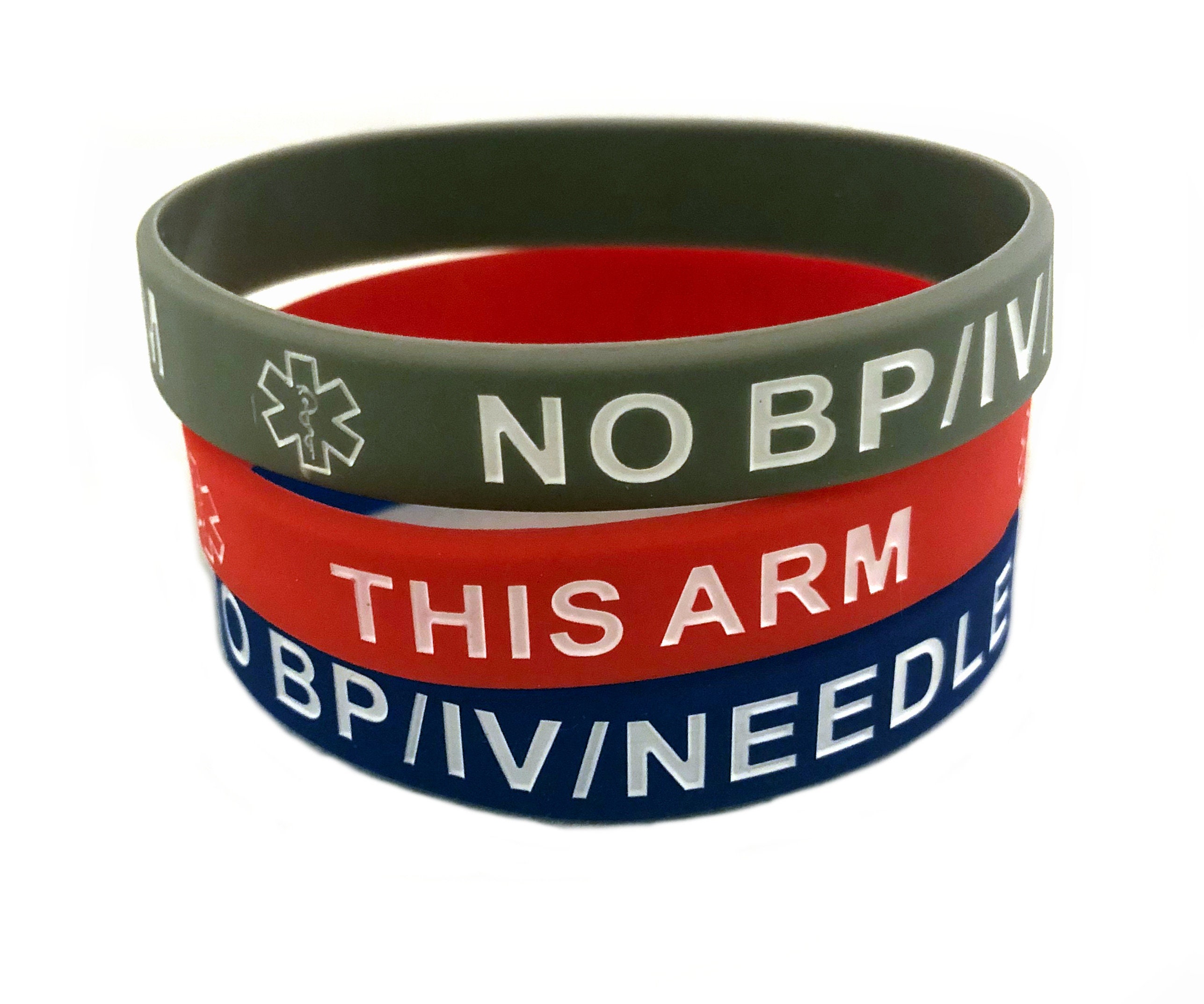 NO/BP/IV Needles This Arm Silicone Bracelets Lot of 2 or 3 (Royal, ...