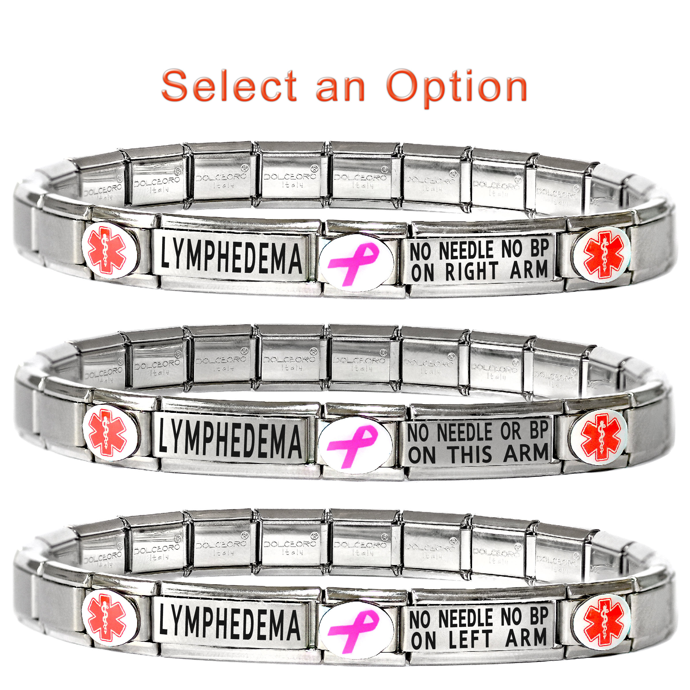 LYMPHEDEMA No Needle No BP on Arm -- Medical Alert Bracelet -- Ital...