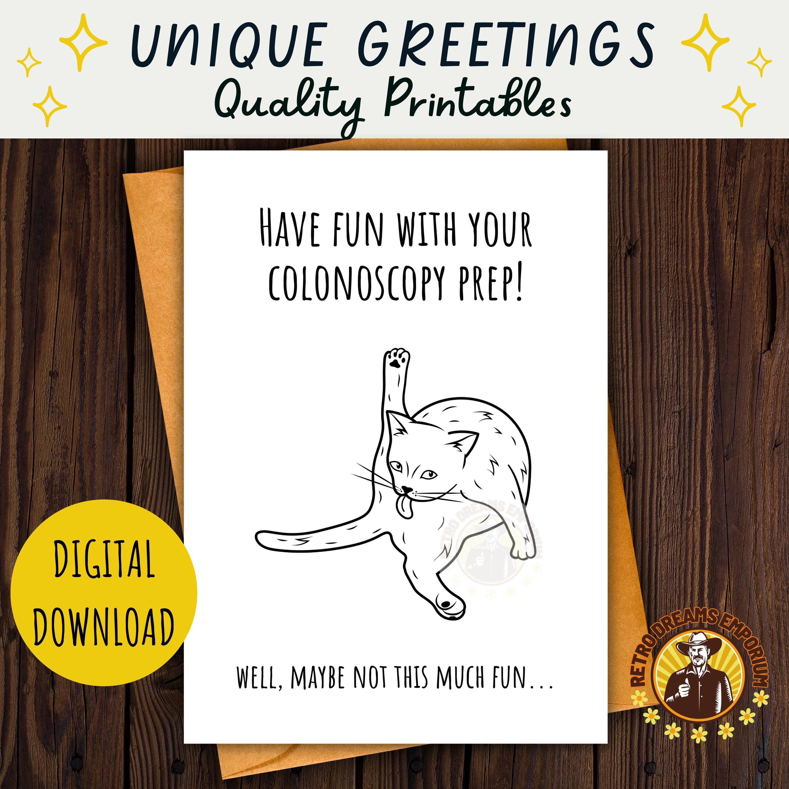 "Funny Kitty Colonoscopy Prep Card, Printable + Free A7 Envelope Template with Purchase Inject ...