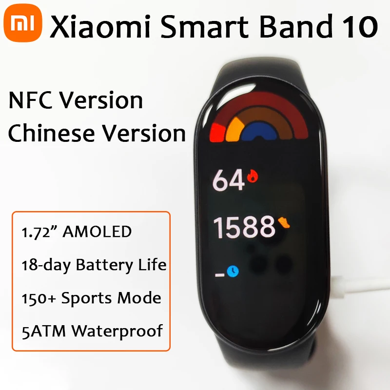 NFC Version Xiaomi Mi Band 10 150+ Sports Modes 1.72" AMOLED Screen BT5.4 21 Day Endurance 5ATM...