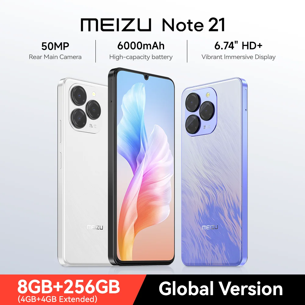 Meizu Note 21 8GB(4+4)/256GB 4G Android 14 Flyme AI OS Smart Cell Phone 6.74" Screen 50MP Smart...
