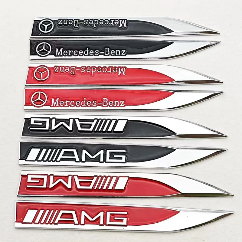 2pcs 3D Metal Car Fender Side Wing Mercedes AMG Logo Emblem Badge Sticker For Mercedes Benz AMG B C ...