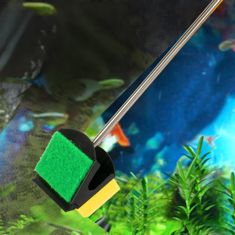 Double-Sided Fish Tank Brush Long Handle Sponge Cleaning Brush Fish...
