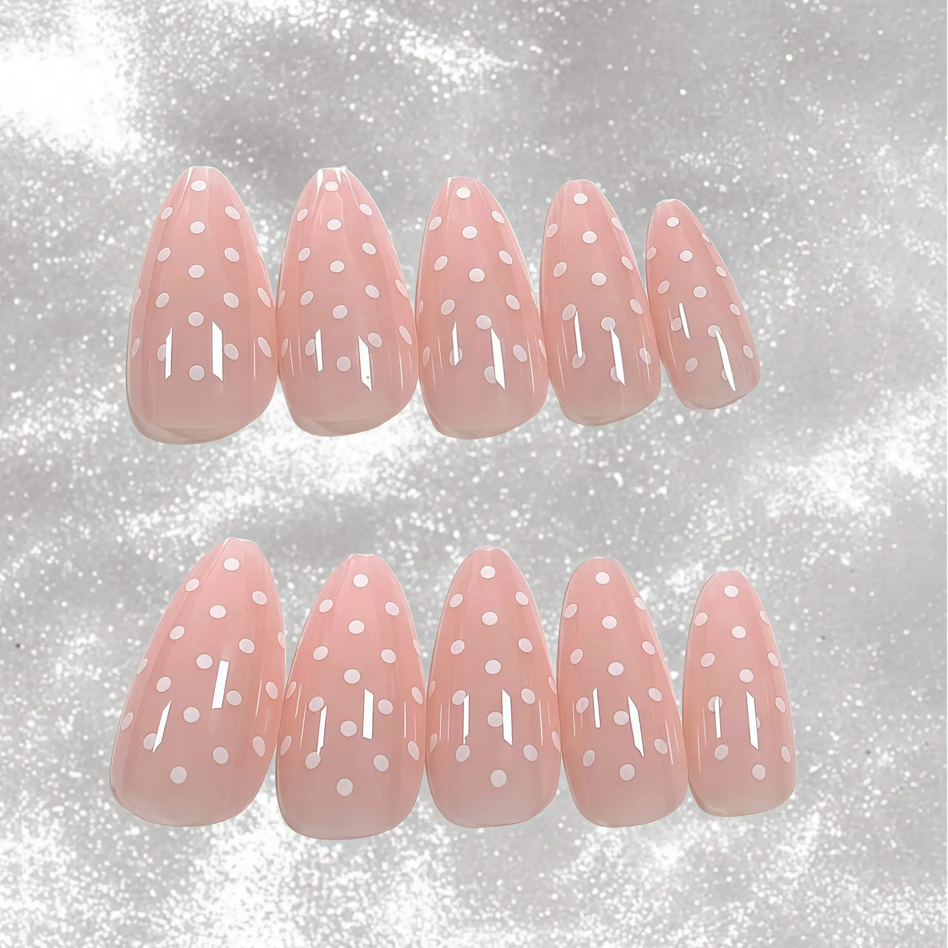 Acrylic Press on Nails Short Almond False Nails with White Polka Do...