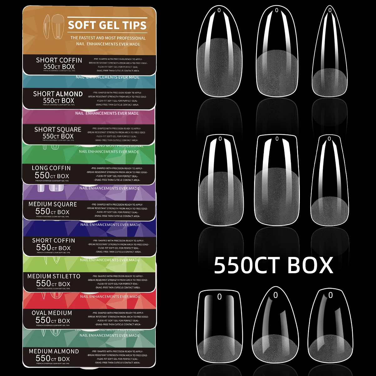 550PCS Soft Gel Nail Tips Full Cover False Nail Tips for Acrylic Na...