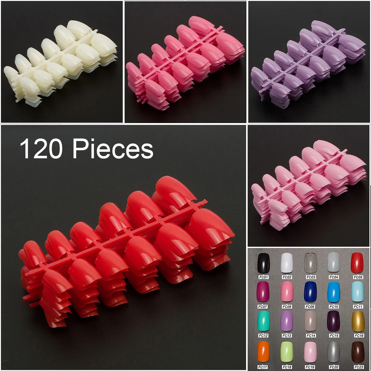 10 Sets, 120 Pieces of Short Round Square Color False Nail Tips Pre...