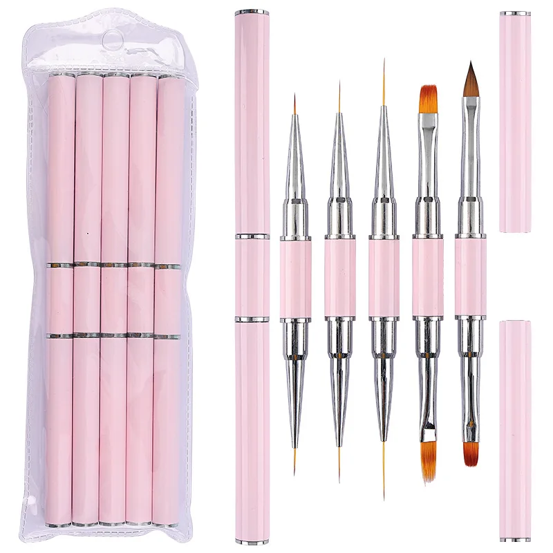 5pcs Pink Metal Double End Nail Art Brushes Oval Flat 3D Ombre Line...
