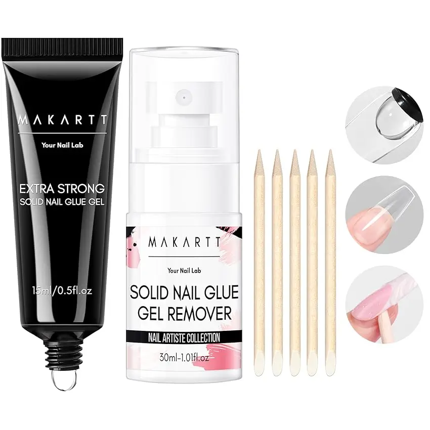 Makartt Nail Glue with Nail Glue Remover Kit: Super Strong Solid Nail Glue Gel for Press on Nails an...