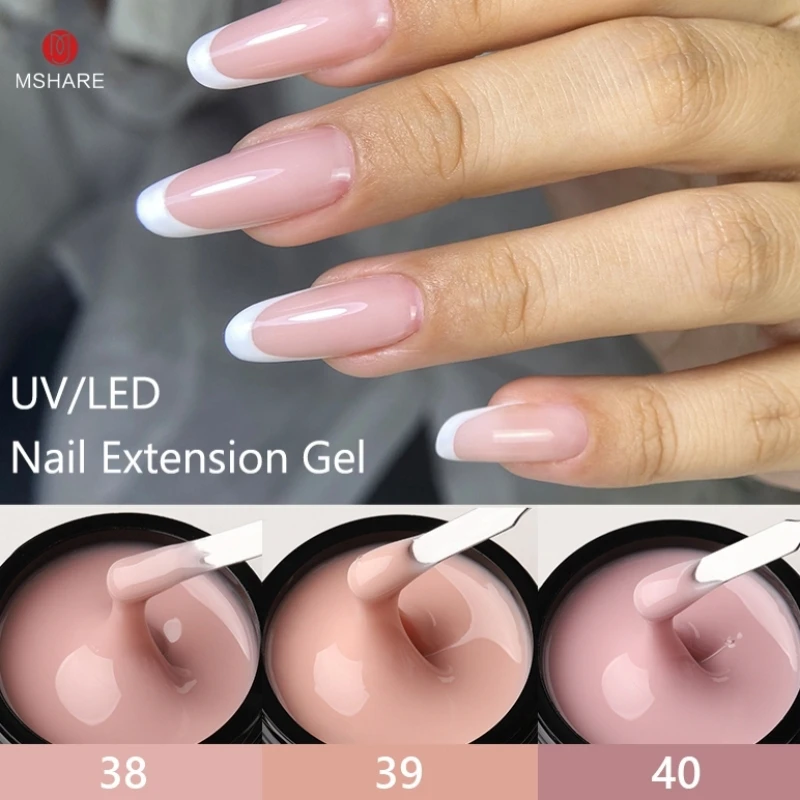 MSHARE 30g Pink Glitter Builder Nails Gel Pearl White Thread UV/LED Self Leveling TPO free Nail Exte...