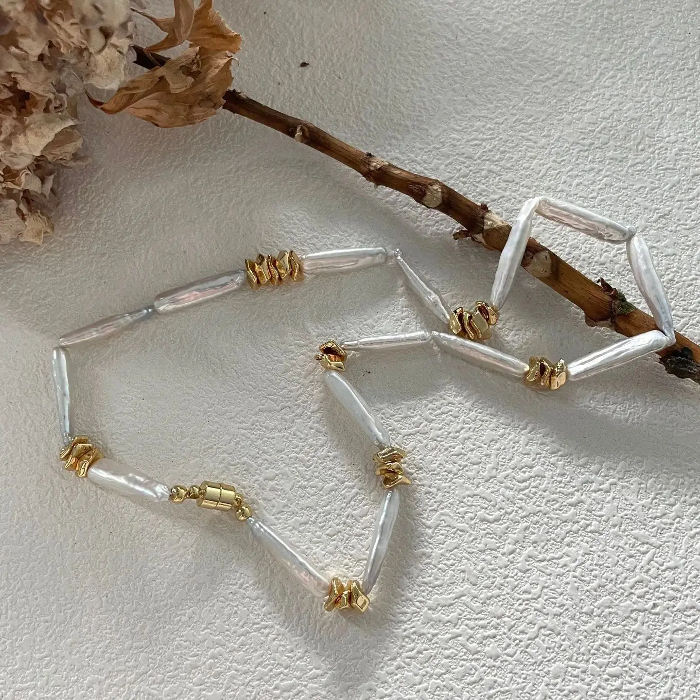 Baroque Shape Pearl Necklace Natural Freshwater Pearls 14k Gold Filled Beads & Magnetic Clasp Fa...