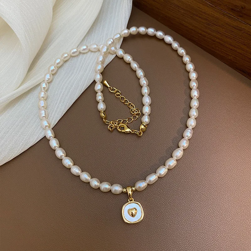 Romantic Love Heart Pendant 100% Natural Freshwater Pearl 14K Gold Filled Female Beads Chain Necklac...