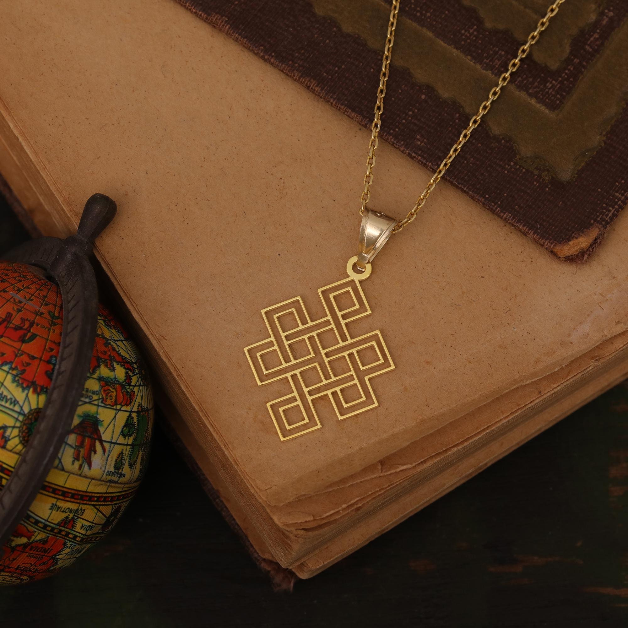 Endless Knot 14k 18k Solid Gold Necklace - Endless Knot Symbol - Sacred Symbol - Tibetan - Buddhism ...