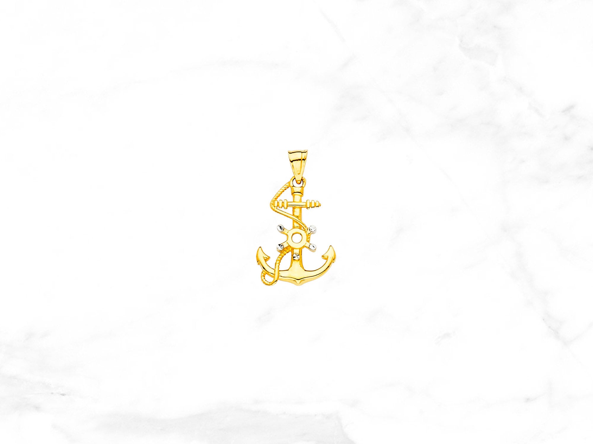 14k Solid Gold Anchor Pendant, Unique Anchor Pendant in Solid Gold,...