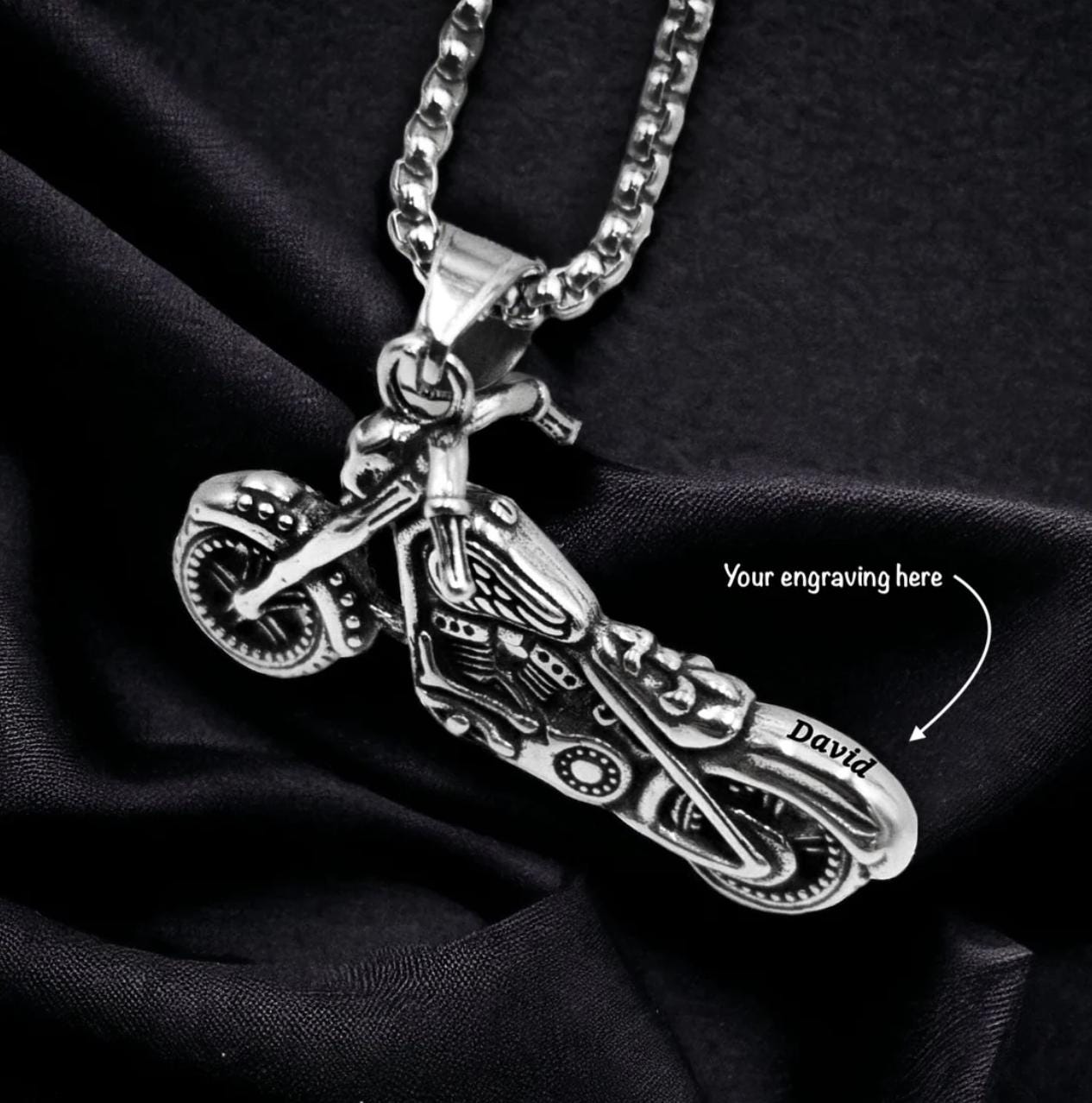 Personalised Motorbike Necklace Custom Engraved Motorcycle Motor Bi...