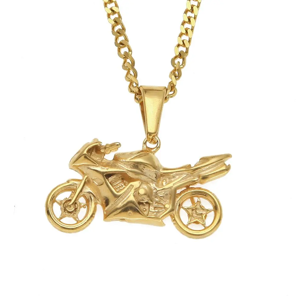 Rock Mens Gold Silver Motorcycle Pendant Cuban Chain Mens Stainless...