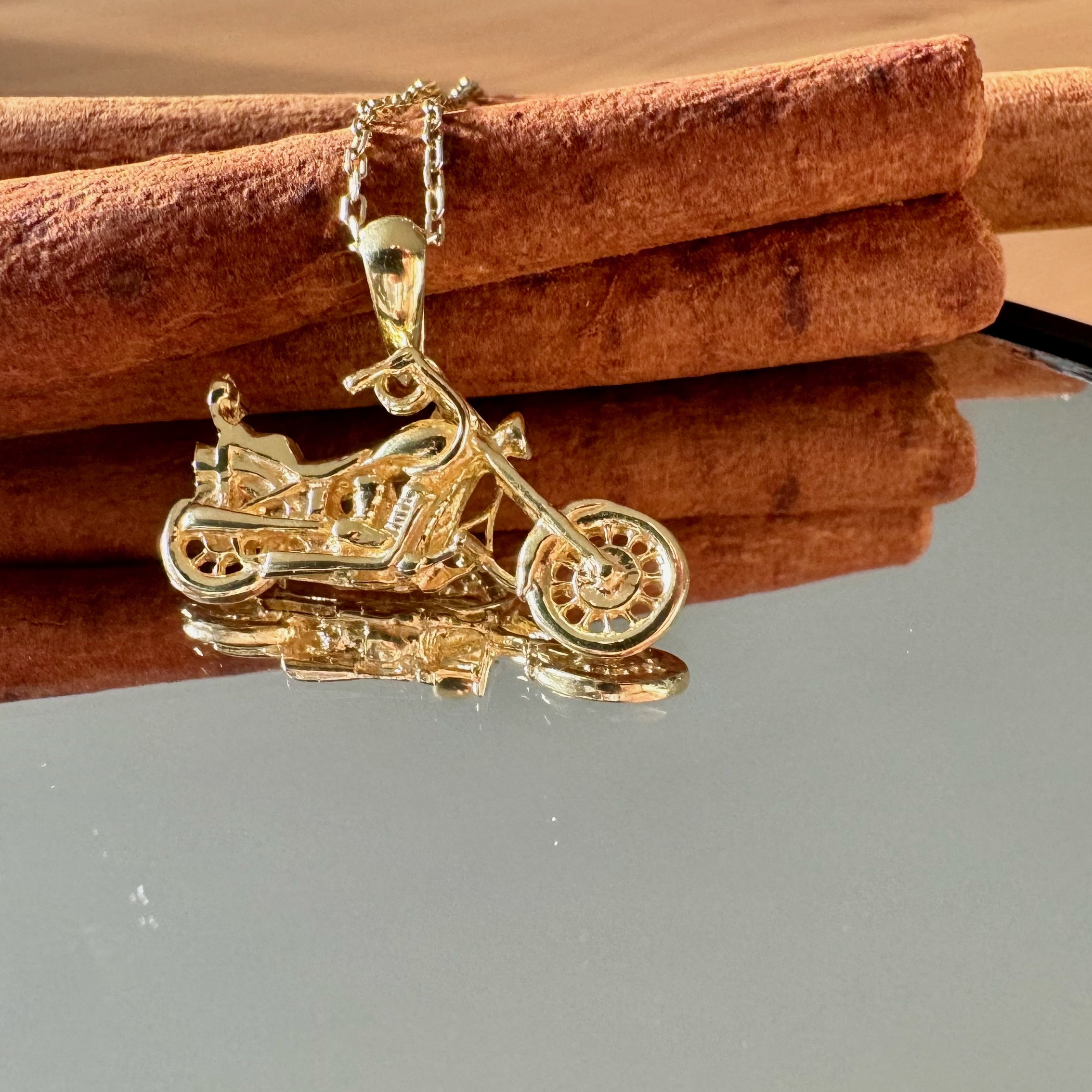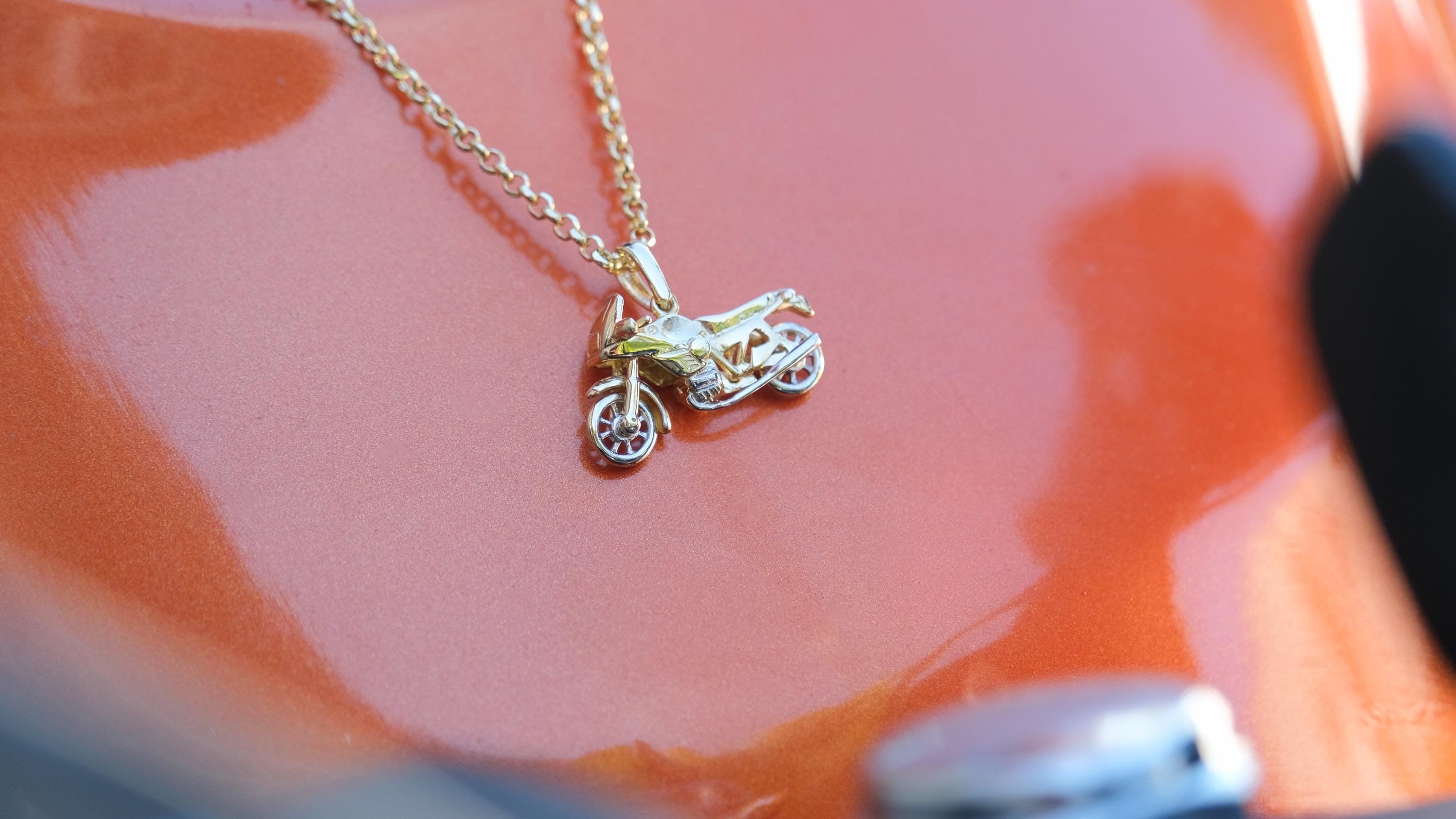 Double-Sided Sterling Silver Motorcycle Necklace, Gold 3D Chopper Pendant Each detail of this pendan...