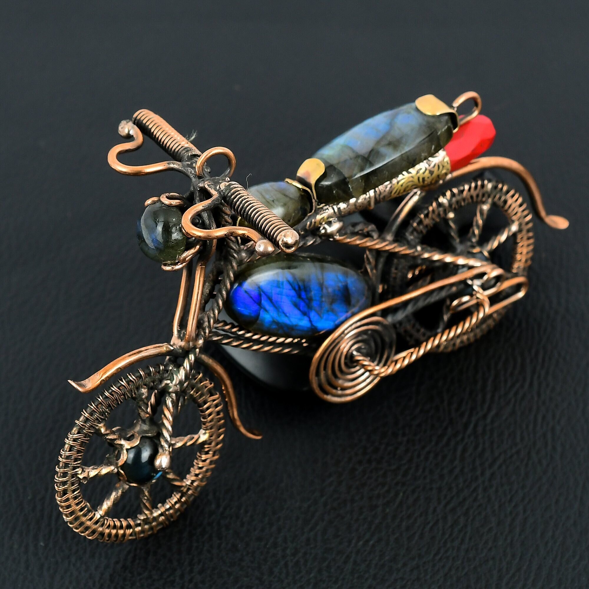 Labradorite Motorcycle Pendant, Pure Copper Wire Wrapped Pendant, L...