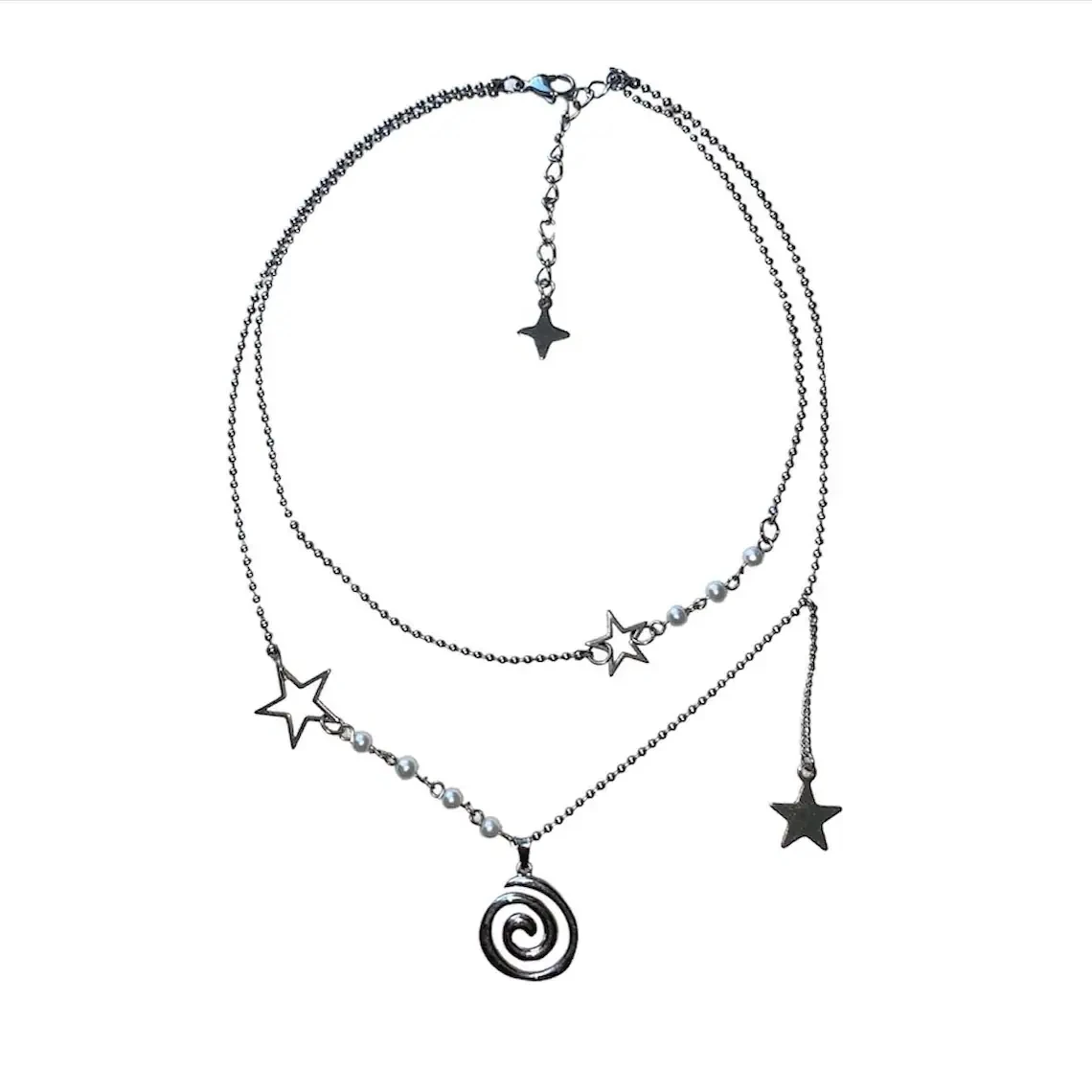 Handmade Fully Stainless Steel Pearl Charm Necklace | With Spiral And Star Charms | Grunge, Y2K, Fai...