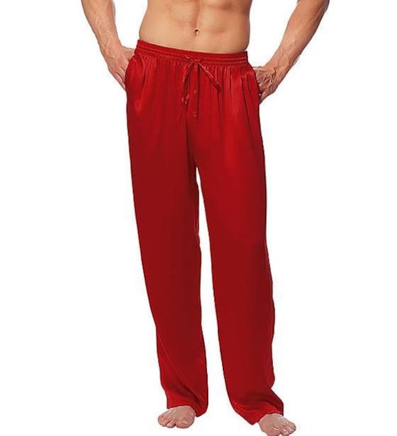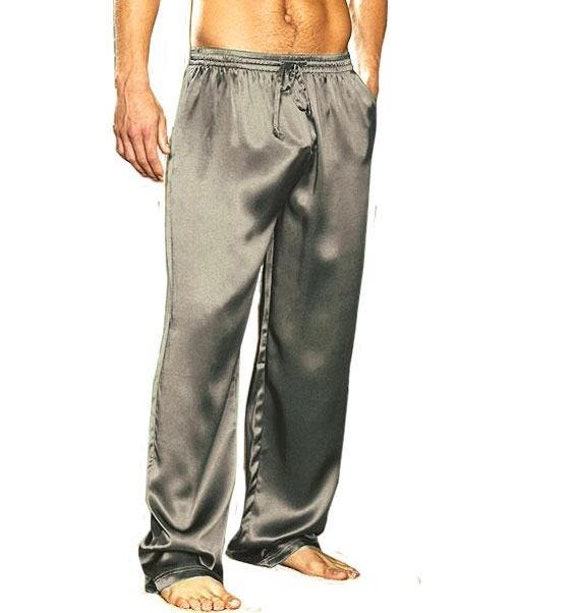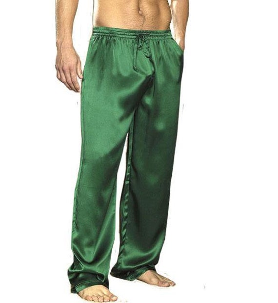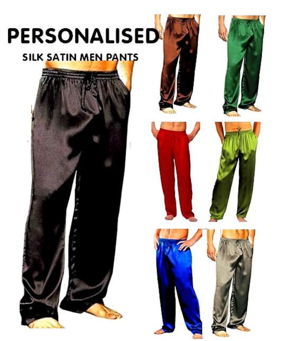 Q2-Personalized Men silk satin long pants Mens Silk Satin Pajamas L...
