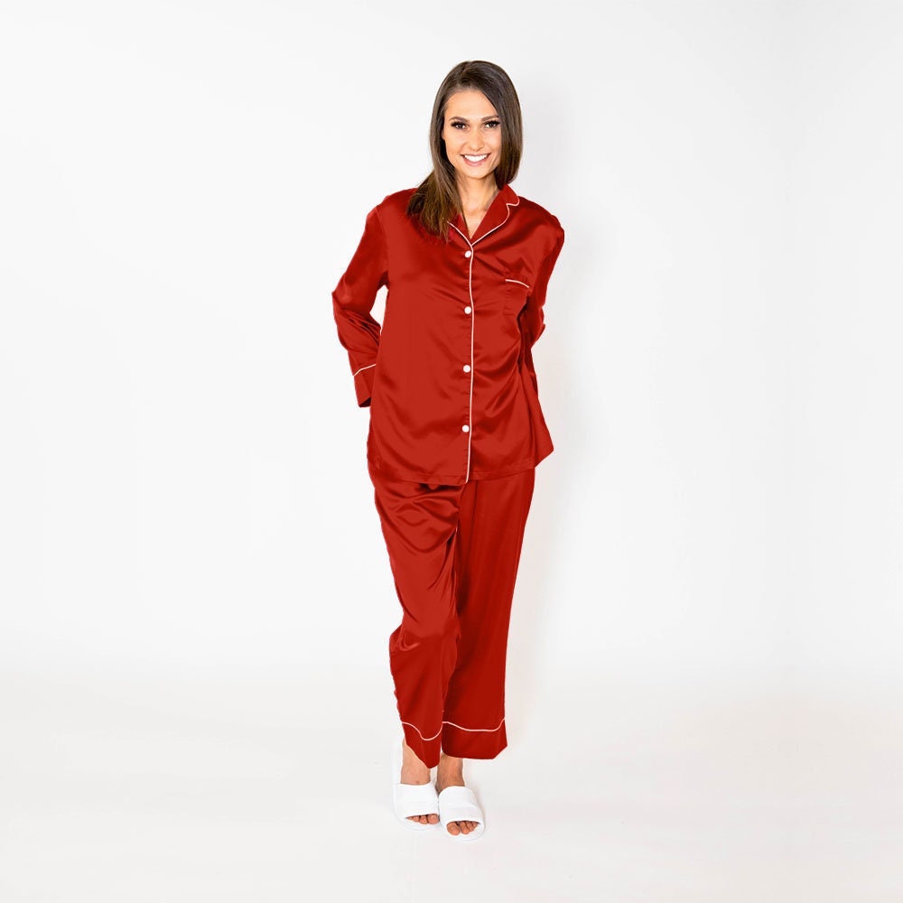 Red Pants Set Pajamas, Custom Pants Set PJs, Wedding Pajamas, Brida...