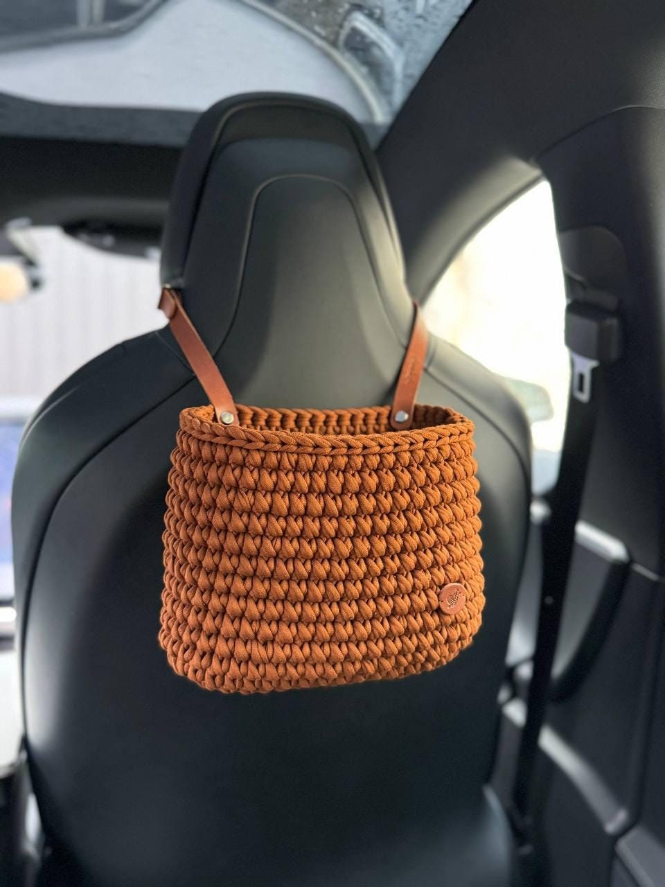 Cute crochet car trash can, car organization, car seat mini bag, ca...