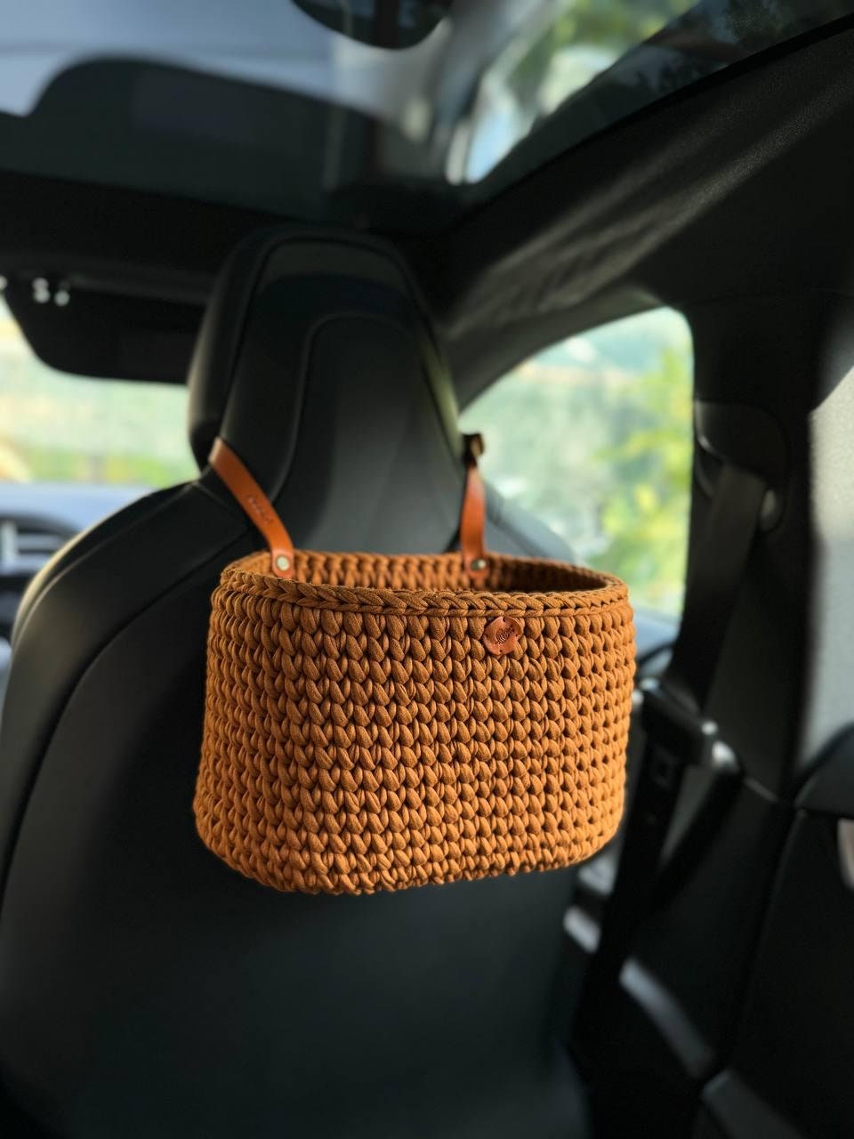 Woven car basket, interior car decor, car lover gift, car organizat...