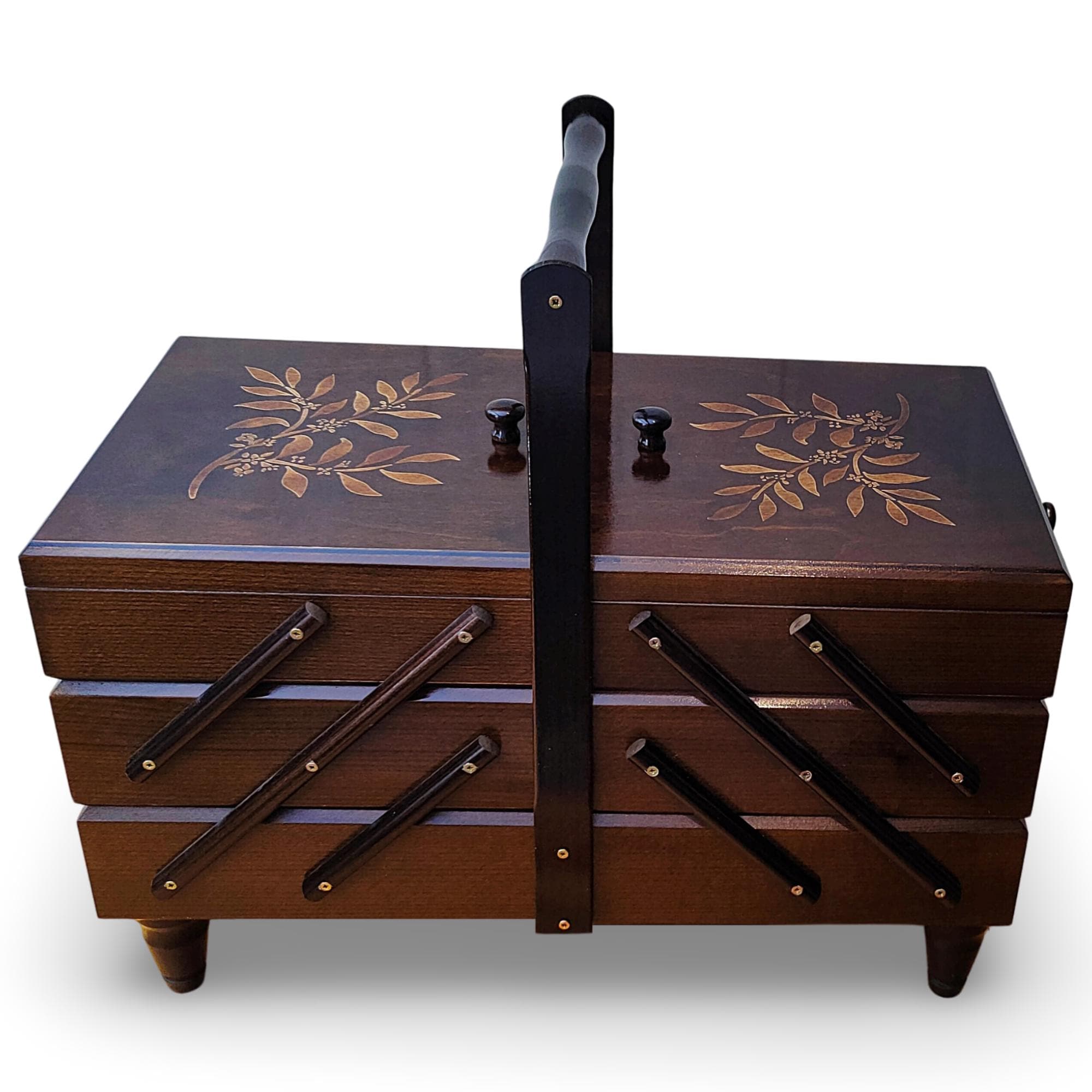 "Extra large wooden box for sewing kit, XXL wood storage box for sewing equipment, huge jewelry...