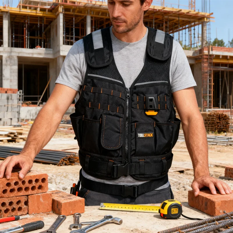 TOOLSTACK Heavy Construction Vest High Quality Safety Work Tool Vest Durable Toolkit Adjustable Mult...