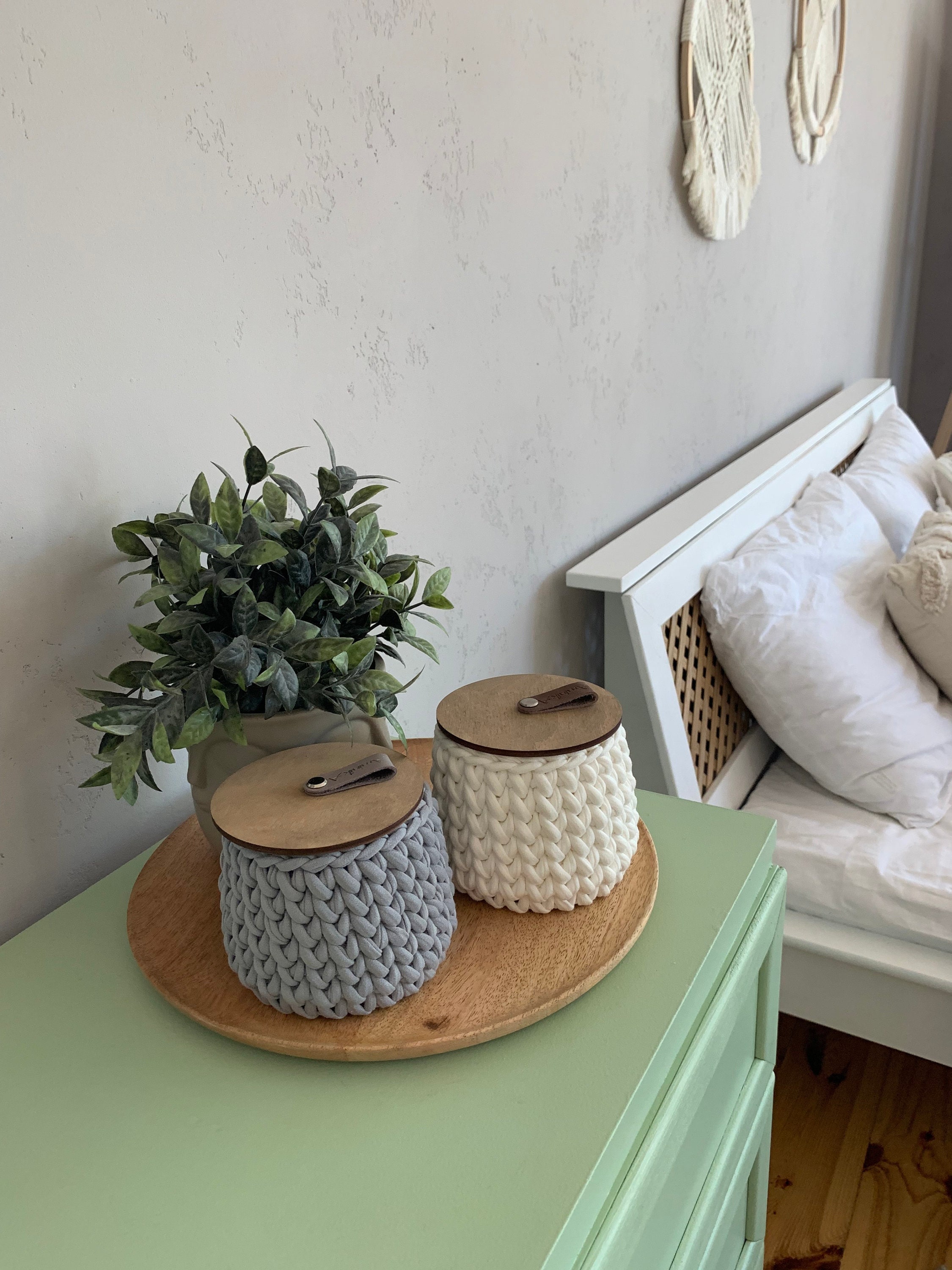 Qtip and cotton ball holder, bathroom storage, boho bathroom contai...
