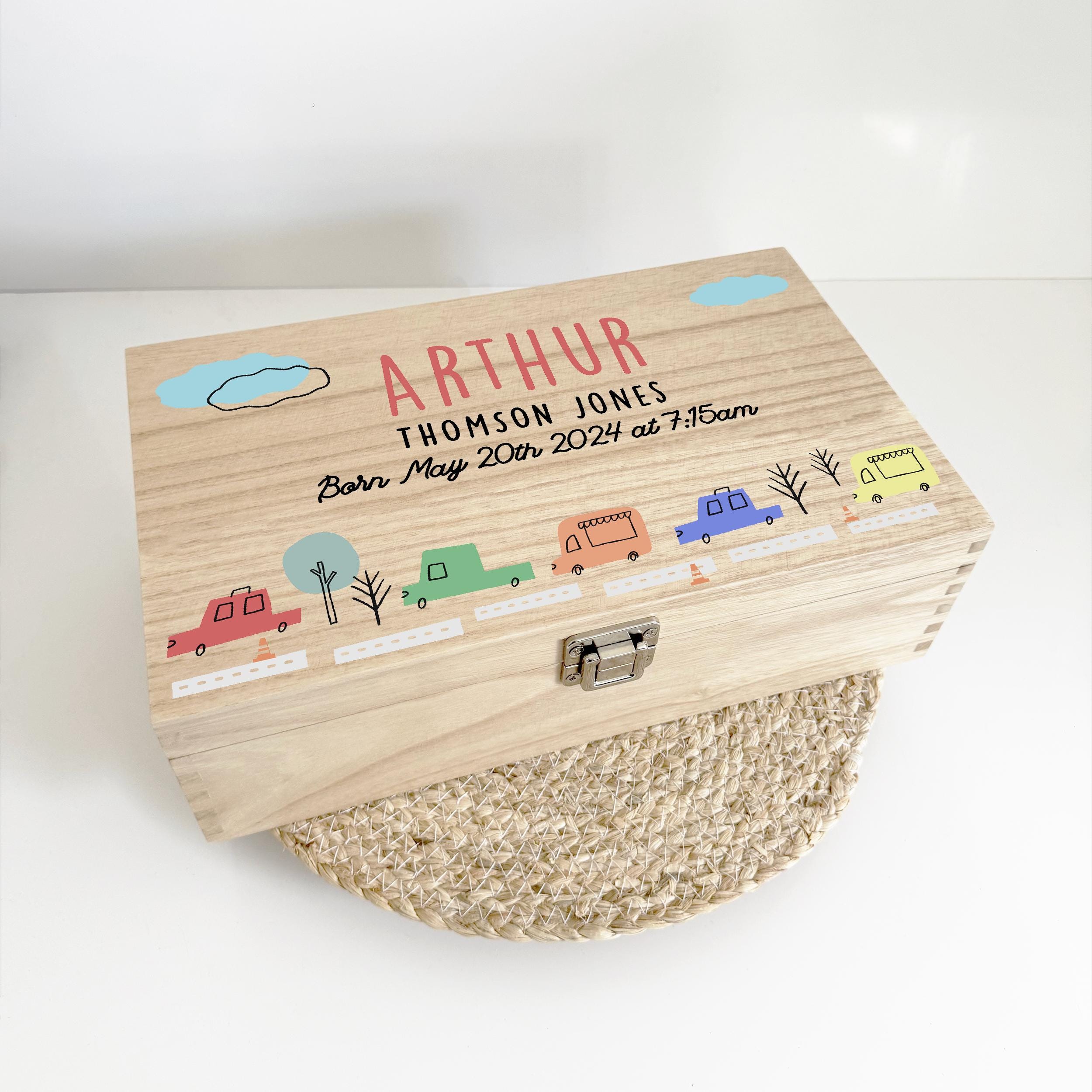 Baby Boy Memory Box, Baby Keepsake Box for Newborn, New Baby Gifts, Car Wooden Box For Baby, Newborn...