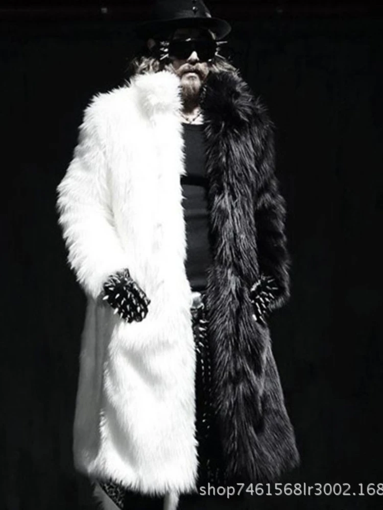 Men Faux Fur Coat Winter Thick Fluffy Long Sleeve Warm Outerwear Luxury Fur Long Jacket Black And Wh...