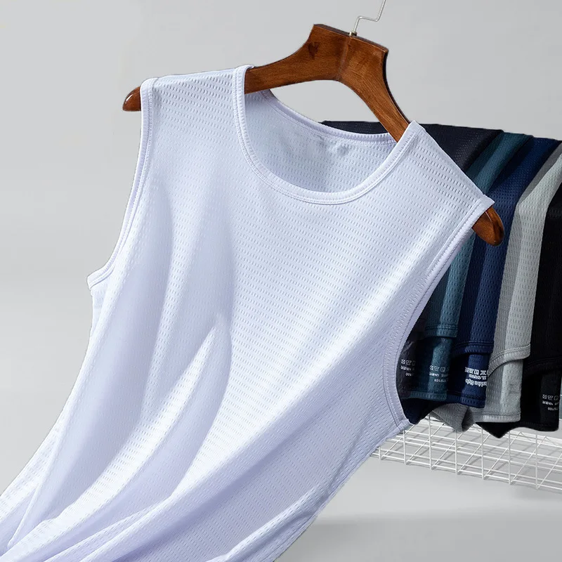 Men Ice silk Tank Tops Breathable Vest Quick-Drying Mesh Sports Sle...