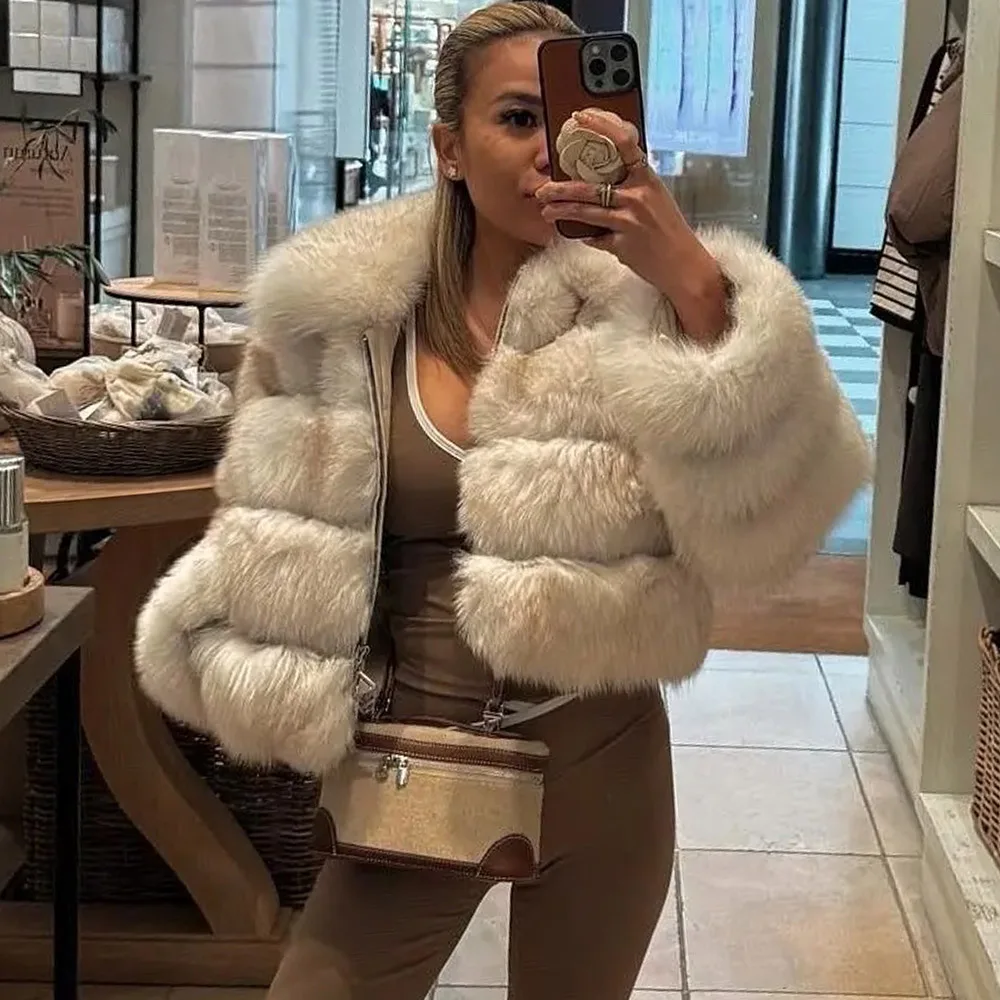 Golden lsland Fox Fur Coat Real Fur Jacket With Collar Short Genuin...