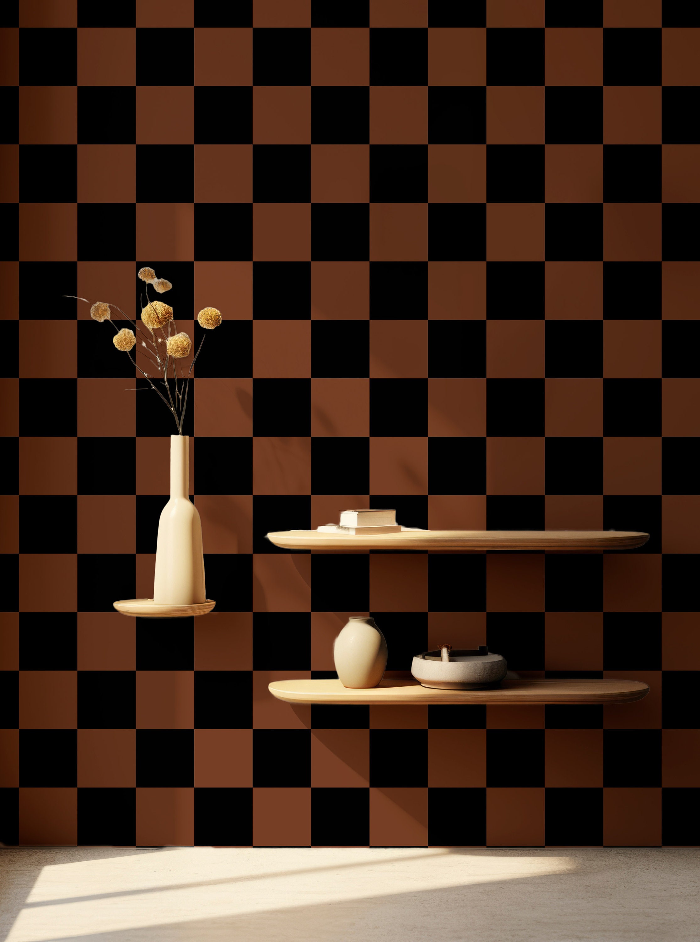 Black and Brown Checkered Wallpaper / Peel and Stick / Traditional ...