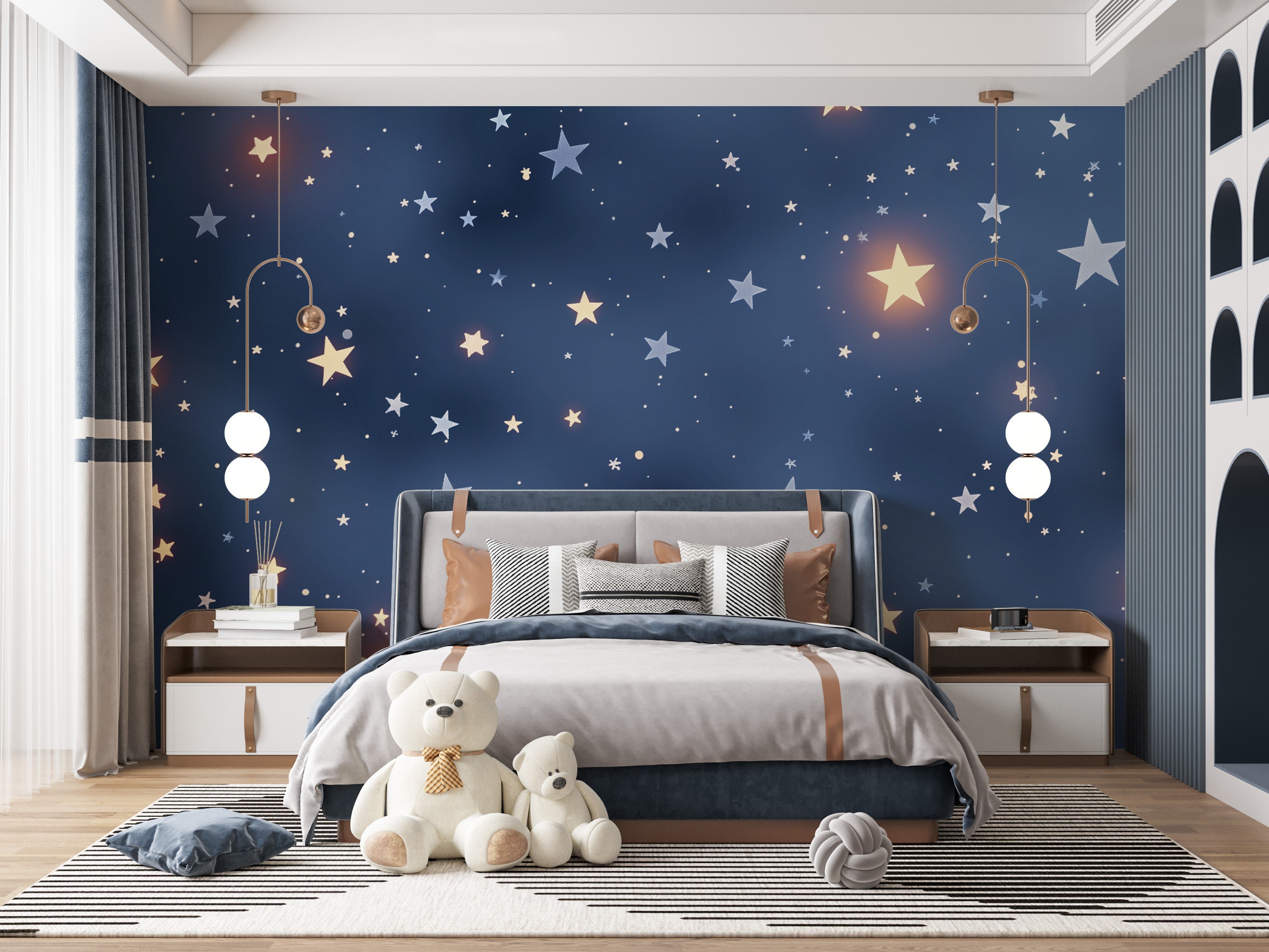 Starry Night Nursery Wallpaper | Baby Boy Kid Mural | Magic Dark Bl...