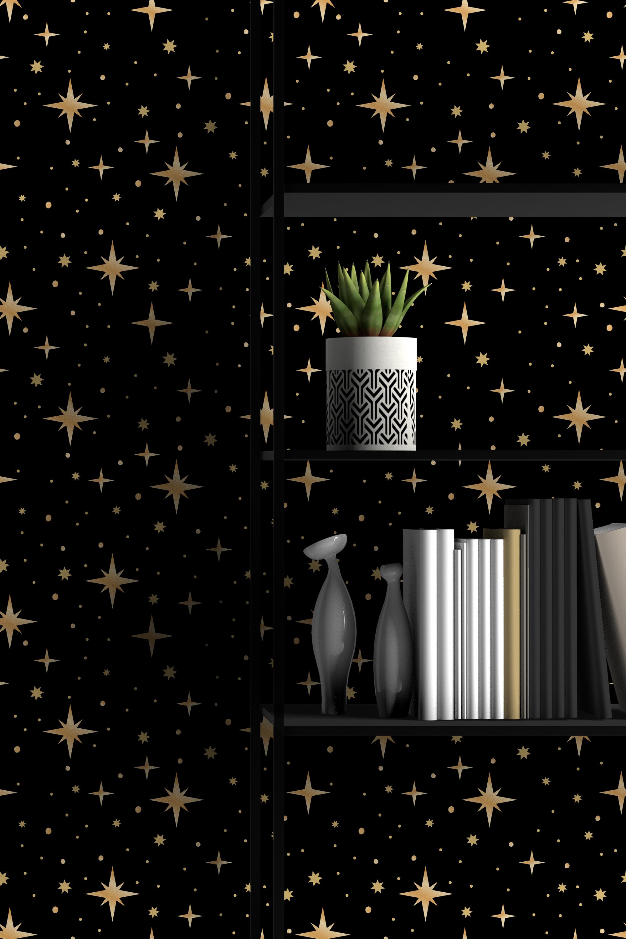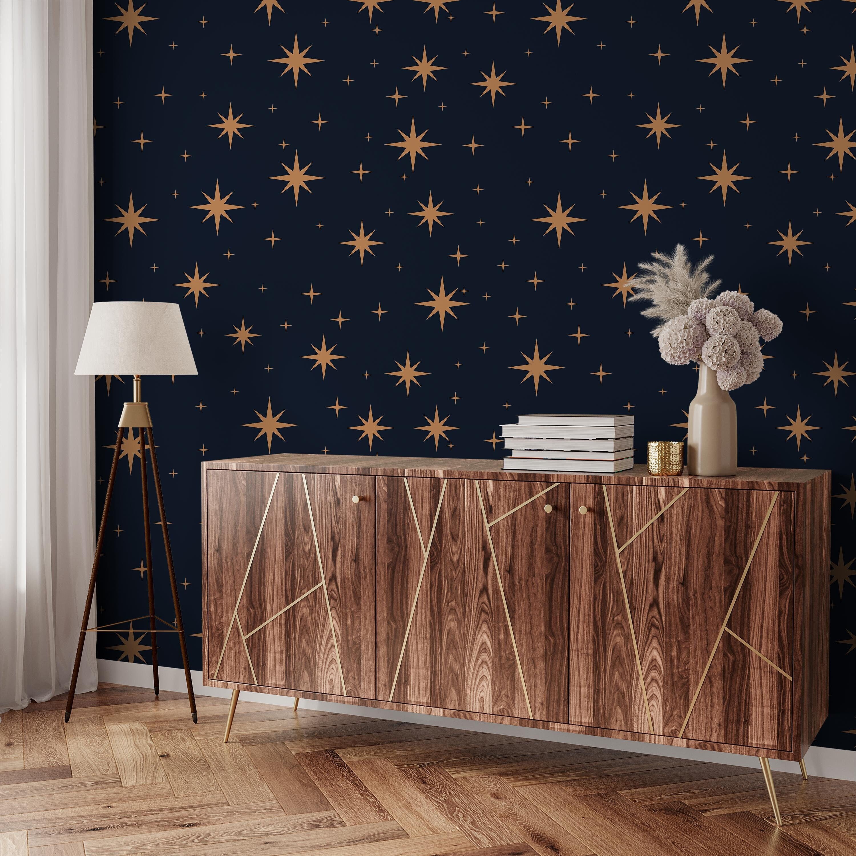 Golden Night Sky Dark Celestial Wallpaper,Stars Cosmic Wall Decor,S...