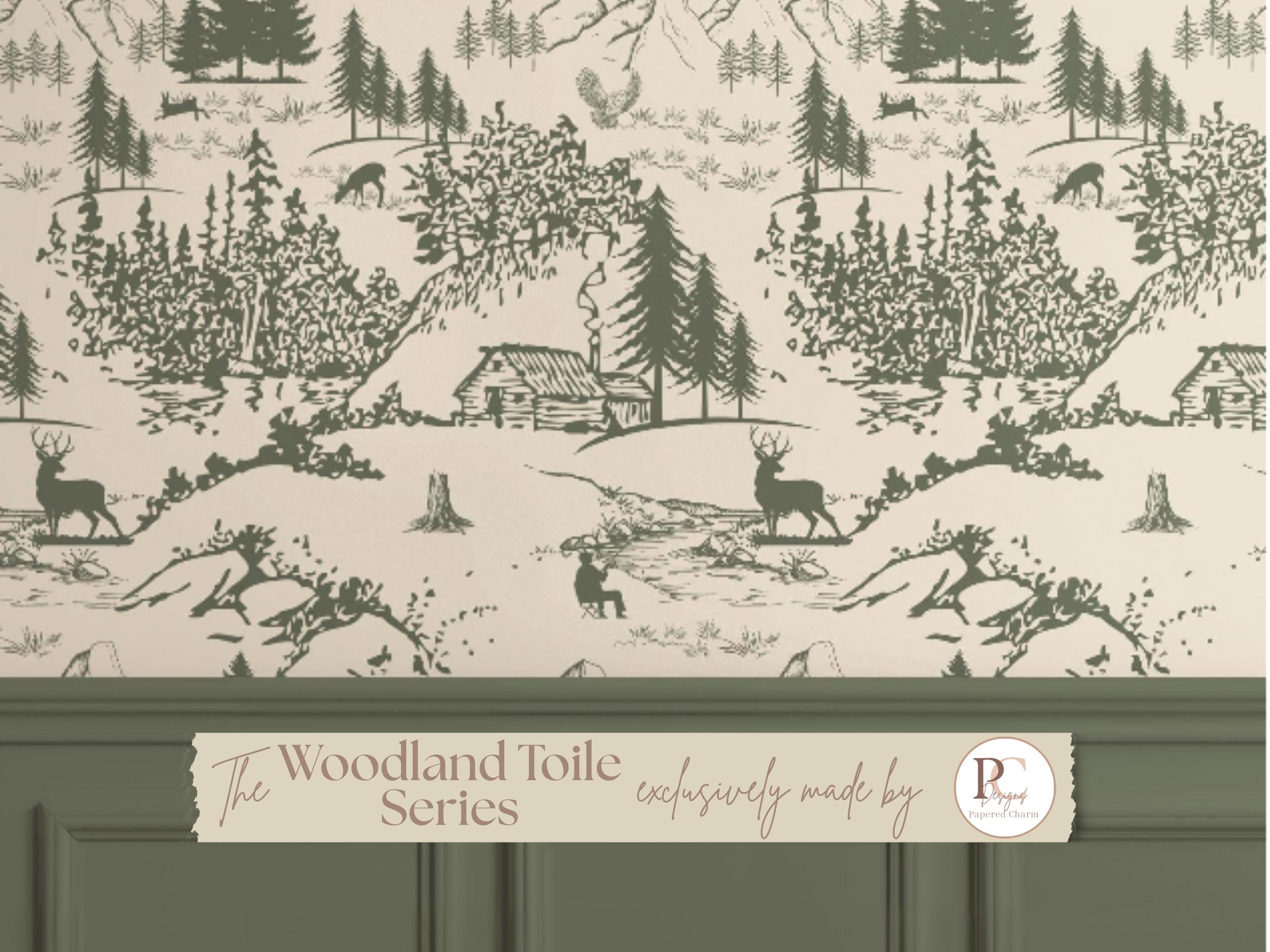 Rustic Woodland Toile Wallpaper: Cabin Forest Scene Peel and Stick ...