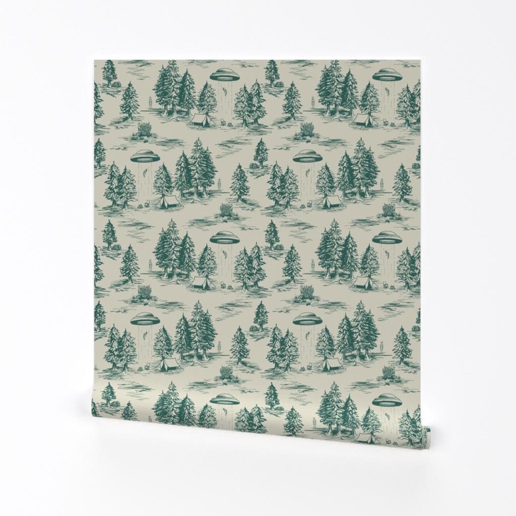 Alien Wallpaper - Small-Scale Teal Alien Abduction Toile De Jouy By...